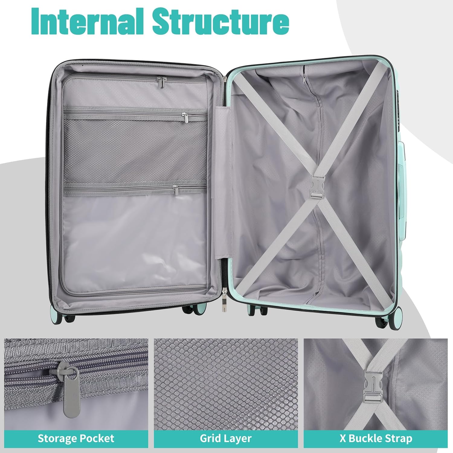 Lightweight Luggage with Spinner Wheels & YKK Zipper, 3-Piece Suitcase ABS+PC Hardside Hard Shell Luggage Set with TSA Lock, Light Mint Green (20+24+28 inch)