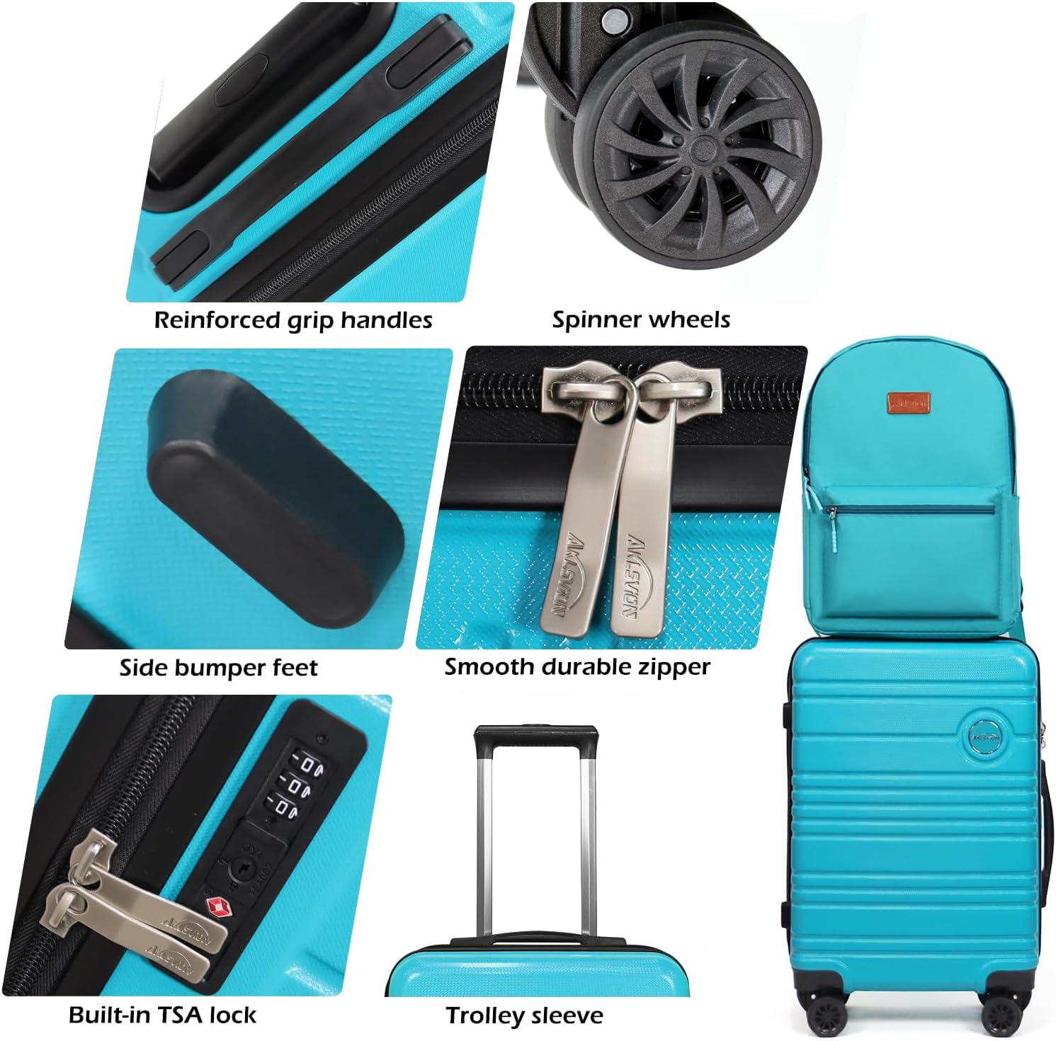 ABS+PC Carry on Luggage set with backpack 3 Pcs suitcace with Spinner wheels TSA Lock 20-In hardshell Lightweight Luggage set (Turquoise)
