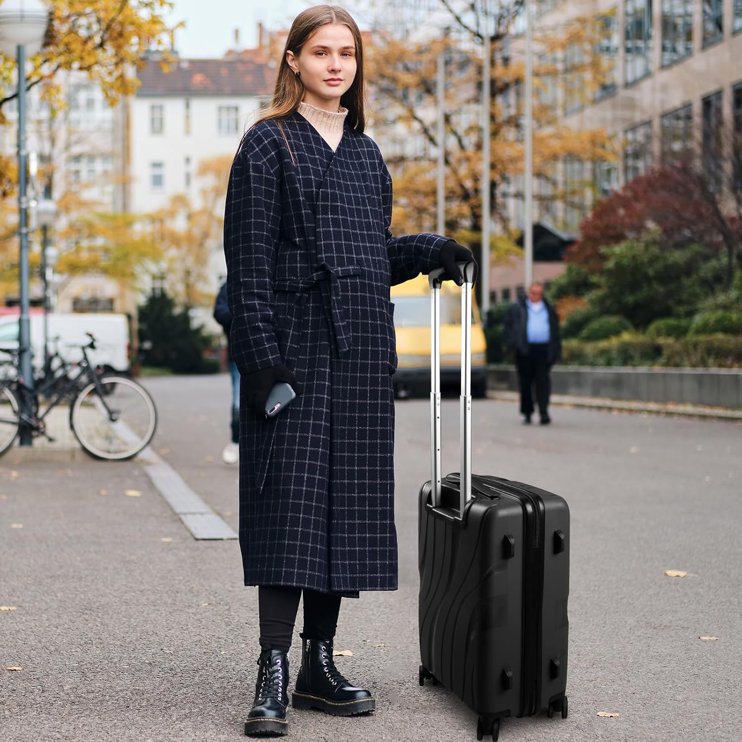 - Easy Travel: Equipped with 360° silent dual-spinner wheels, the carryon suitcases with wheels glides effortlessly across uneven surfaces like airport carpets and pavement. The ergonomic telescoping handle features a one-touch height adjustment button, accommodating users of all heights for comfortable towing.