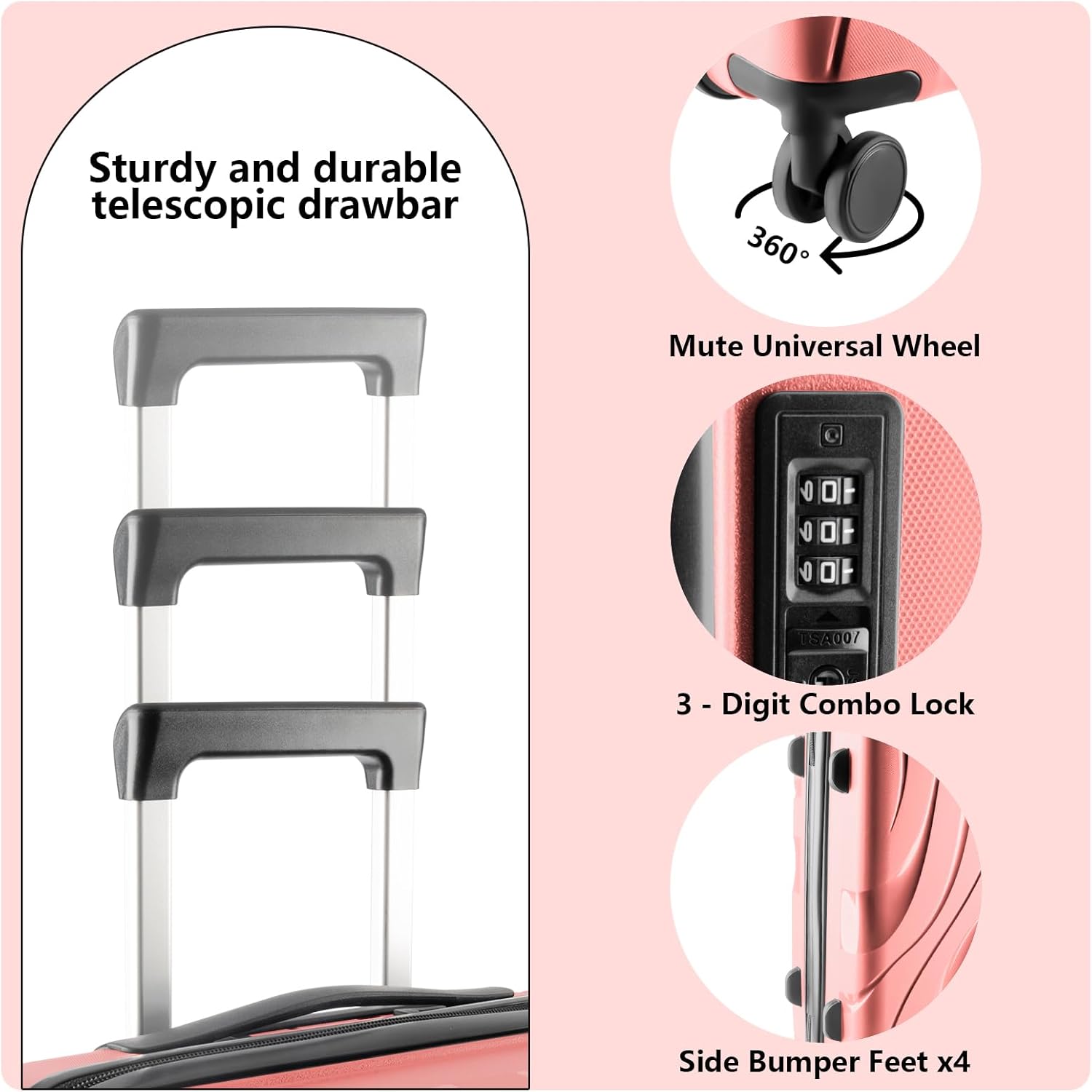 20-inch Carry-On Luggage with TSA Lock & 360° Spinner Wheels, 7.7 lbs, Scratch and Water Resistant - Ideal for Business Travel Suitcase(Pink)