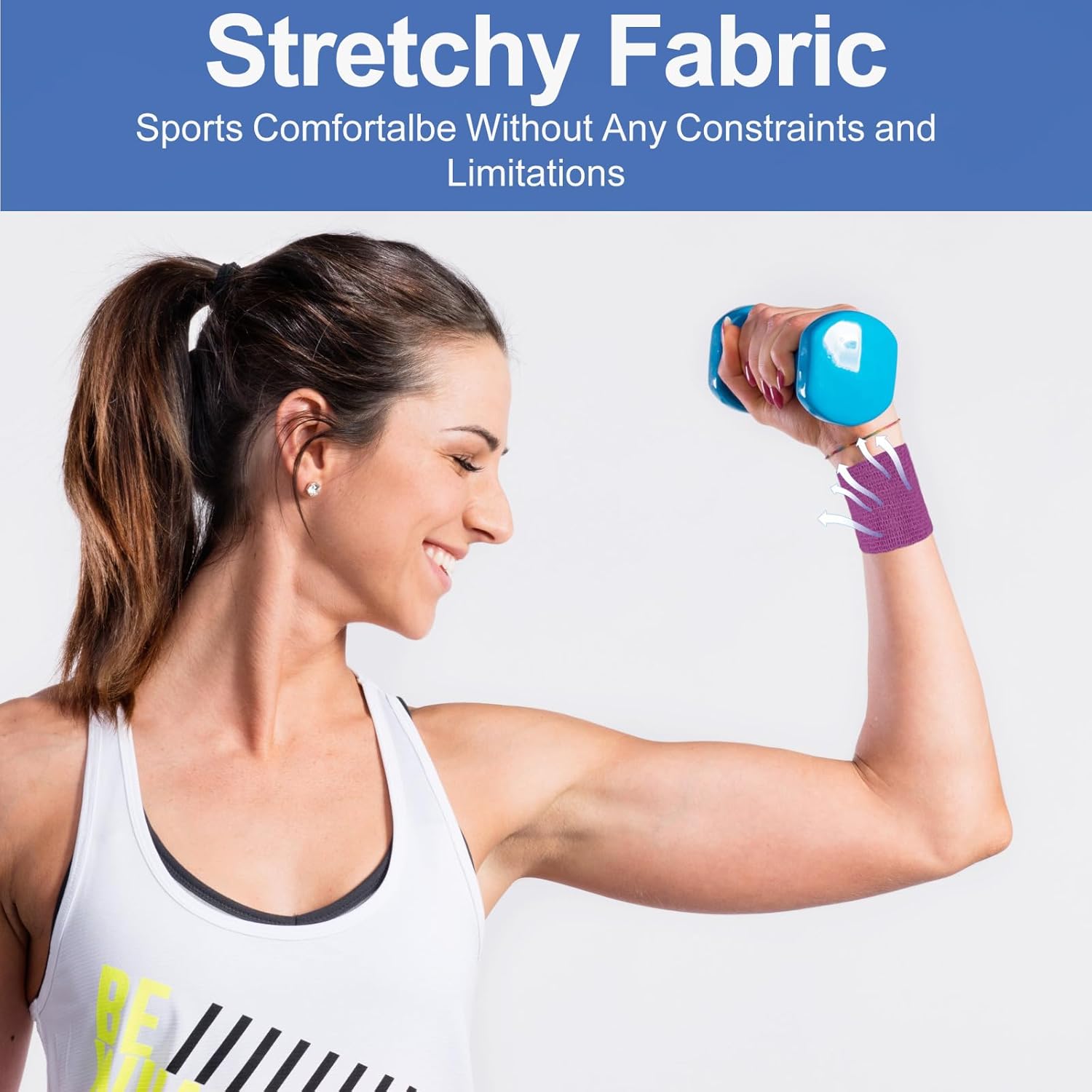 24 Pack 2 Inch x 5 Yards Self Adhesive Bandage Wrap, Elastic Cohesive Wrap 2 inch Vet Wrap Bandage Tape, Purple Grip Tape for Athletic, Sports, Wrist, Ankle Sprains