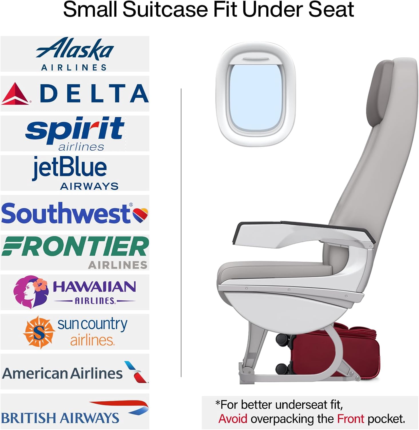 Hanke 16 Inch Underseat Carry On Luggage with Spinner Wheels Airline Approved, Small Rolling Suitcase Softside Underseater Lightweight TSA Travel Roller Suitcase Carry-On Bag(Burgundy)