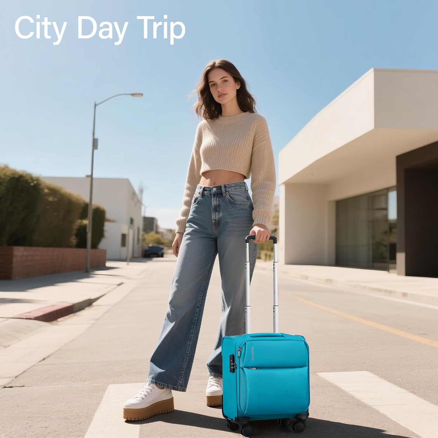 Hanke 16 Inch Underseat Carry On Luggage with Spinner Wheels for Airline, Small Softside TSA Approved Luggage Lightweight Rolling Suitcases Under Seat Travel Carry-On Bag(Caribbean Blue)
