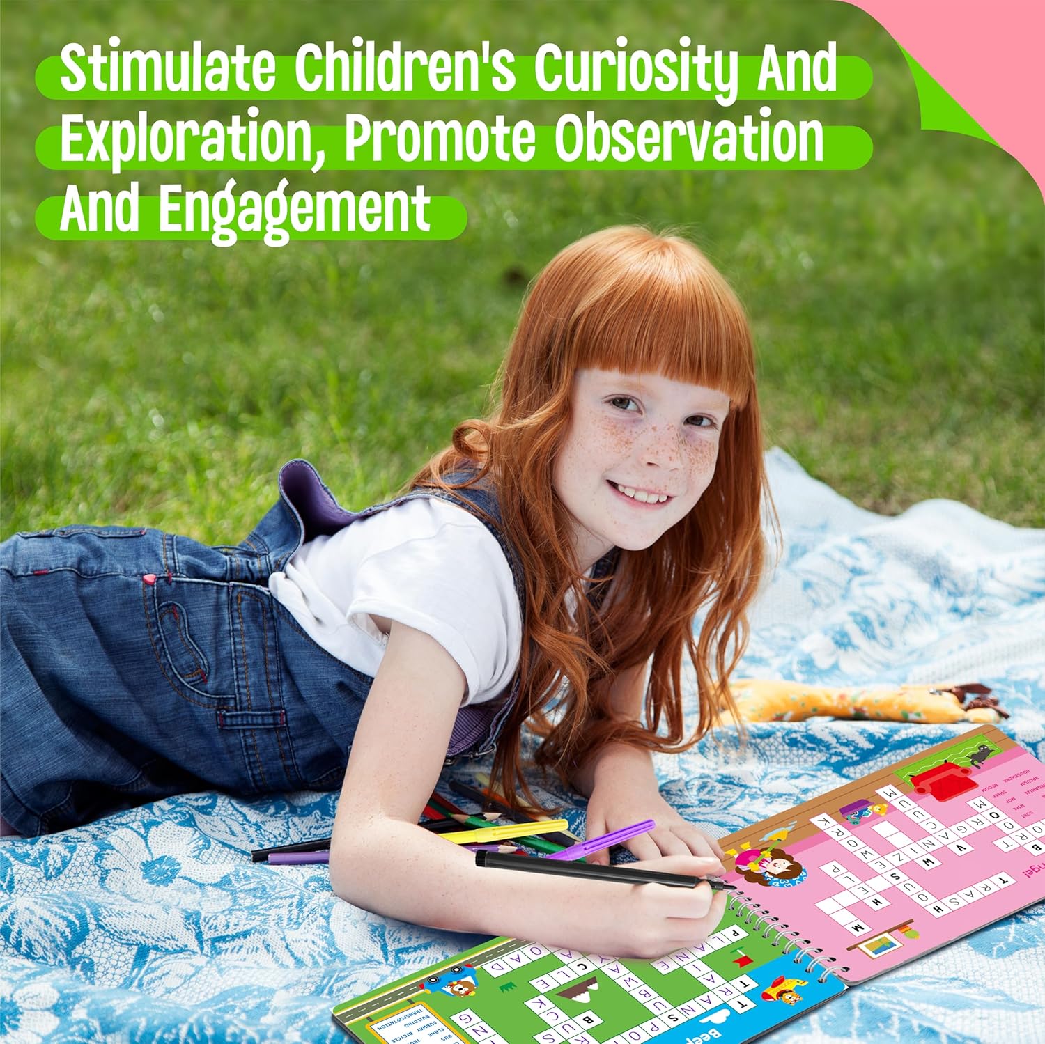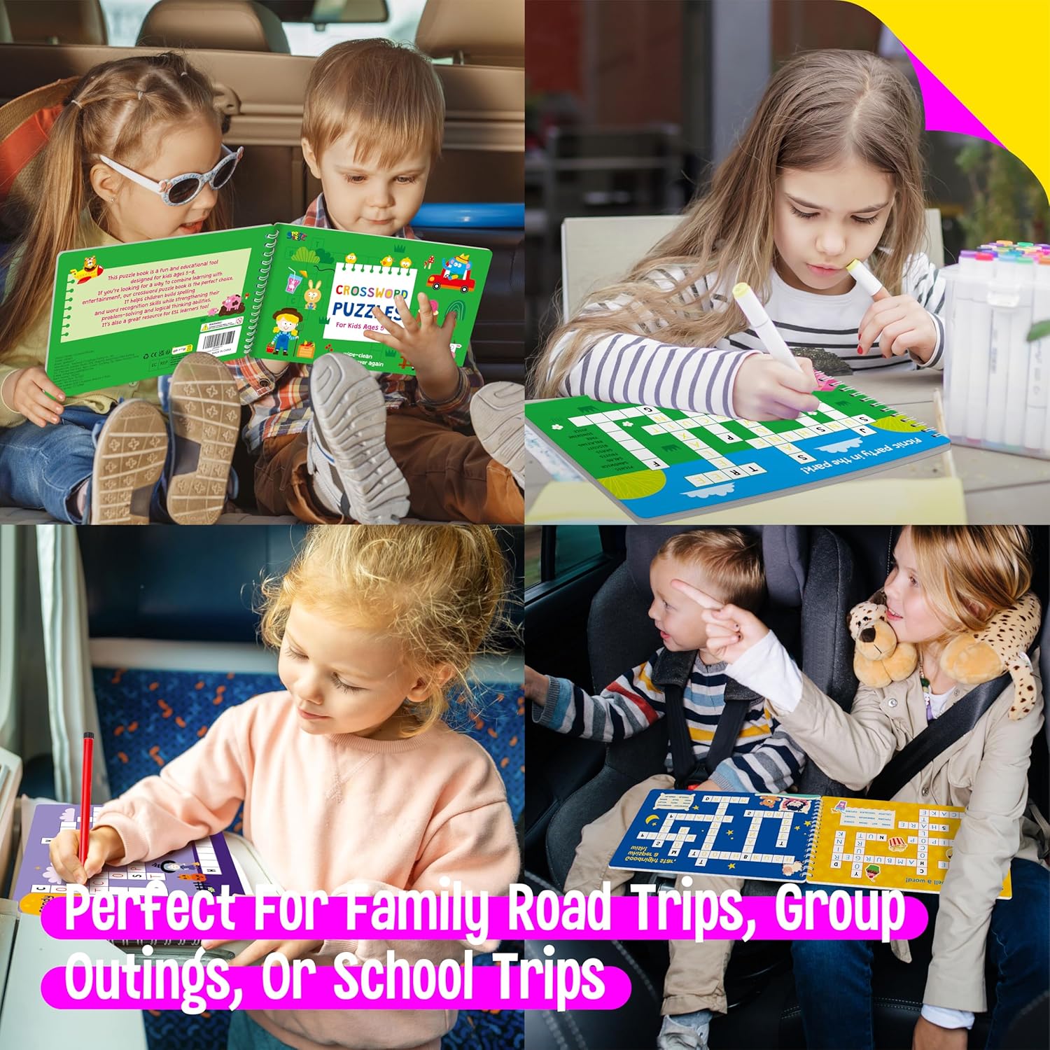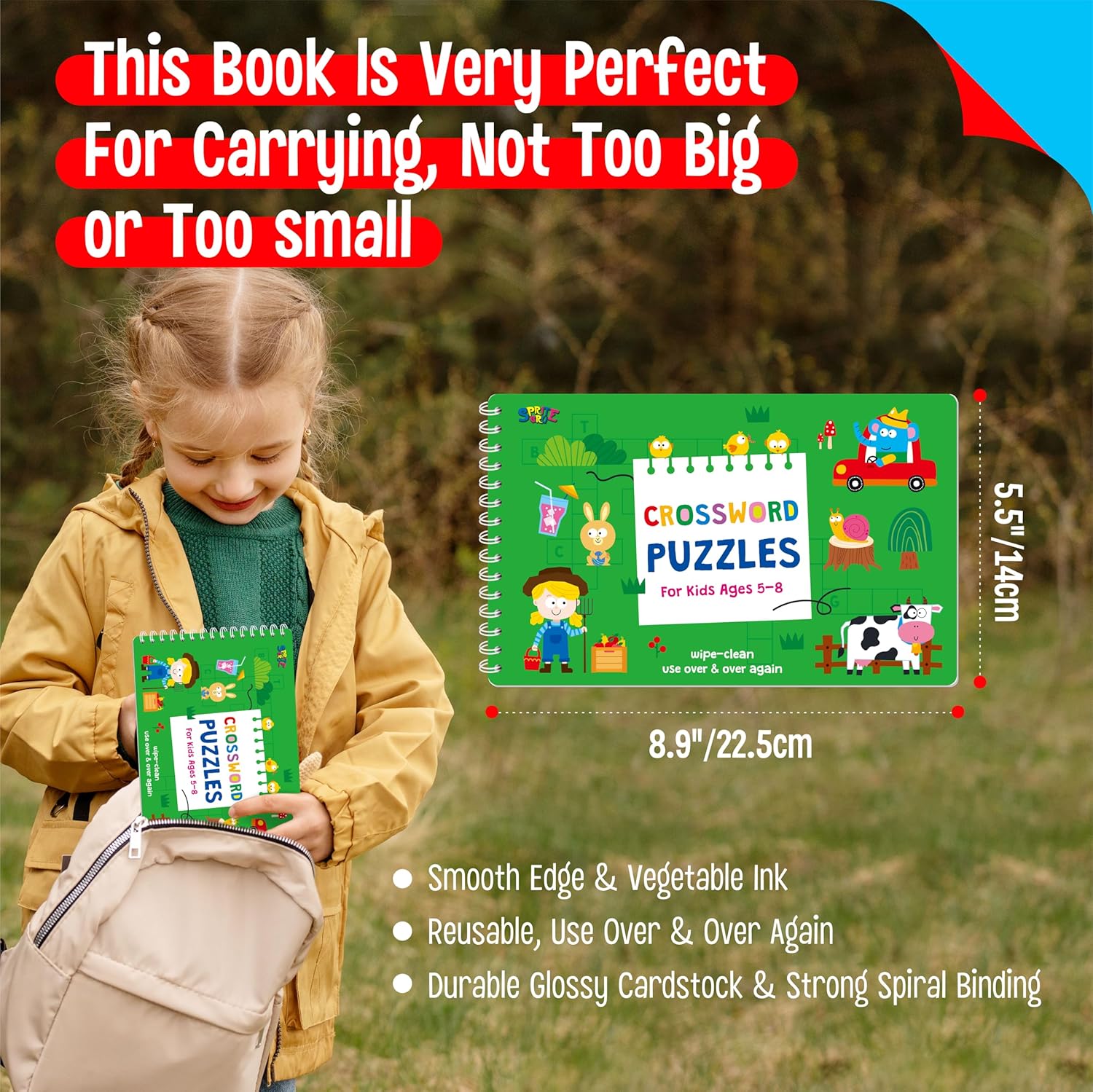 - 30 Reusable Activities: Our dry-erase activity book features 30 different crossword puzzles, providing endless fun and brain stimulation for kids. Each page challenges young minds to decode clues and fill in answers, boost vocabulary and spell skills while keeping them entertained for hours.
