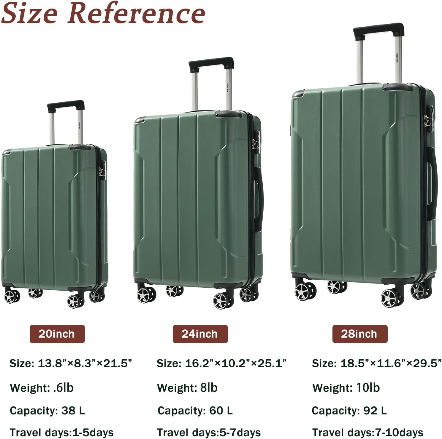 Merax Luggage Sets 3-Piece Hardshell with Spinner Wheels Lightweight Suitcase with Corner Guards (Green, 20/24/28)