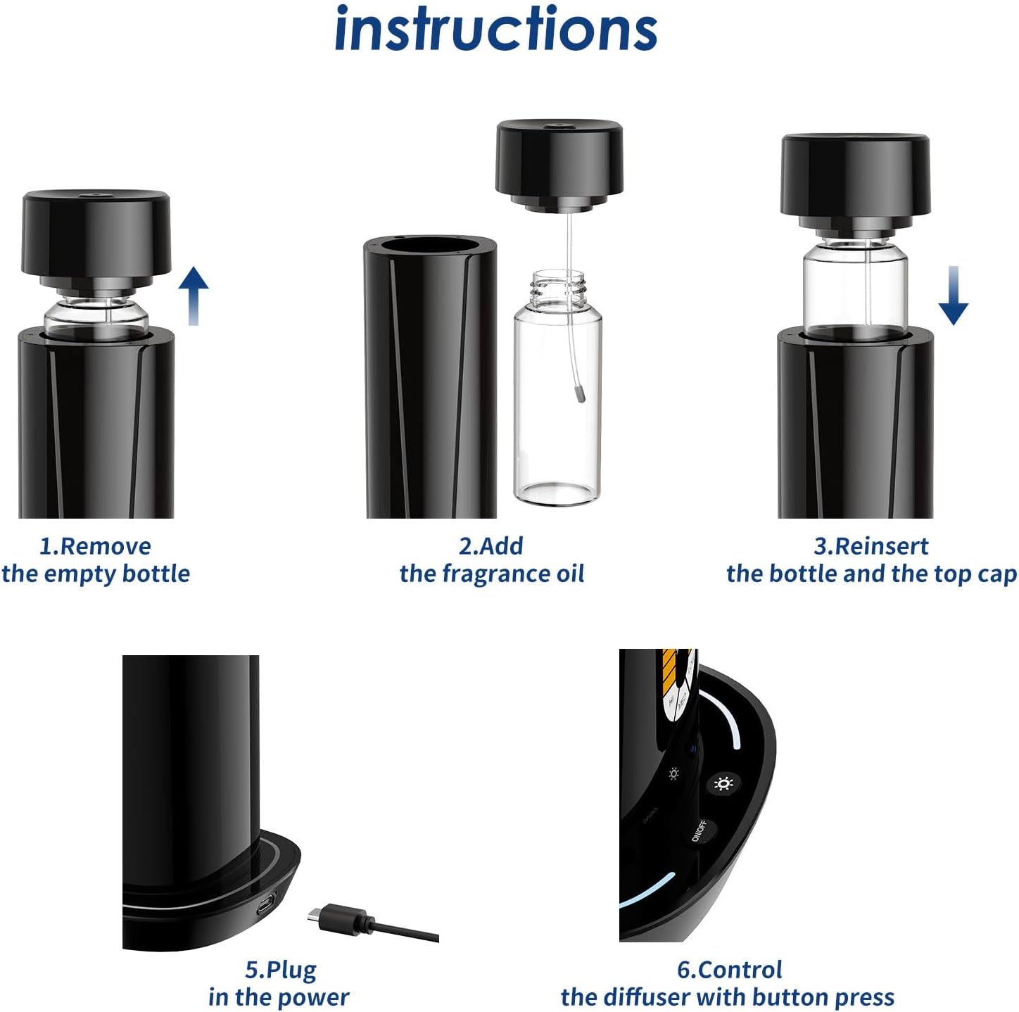 - 【Scent diffuser starter kit】The package includes everything you need to get started: the diffuser unit, one 120ml refillable essential oil bottle, five trial-size essential oils, remote control, USB cable, power adapter, replaceable atomizer core*2 and a user manual.Usage Note: Please use the included adapter and cable to power the diffuser.