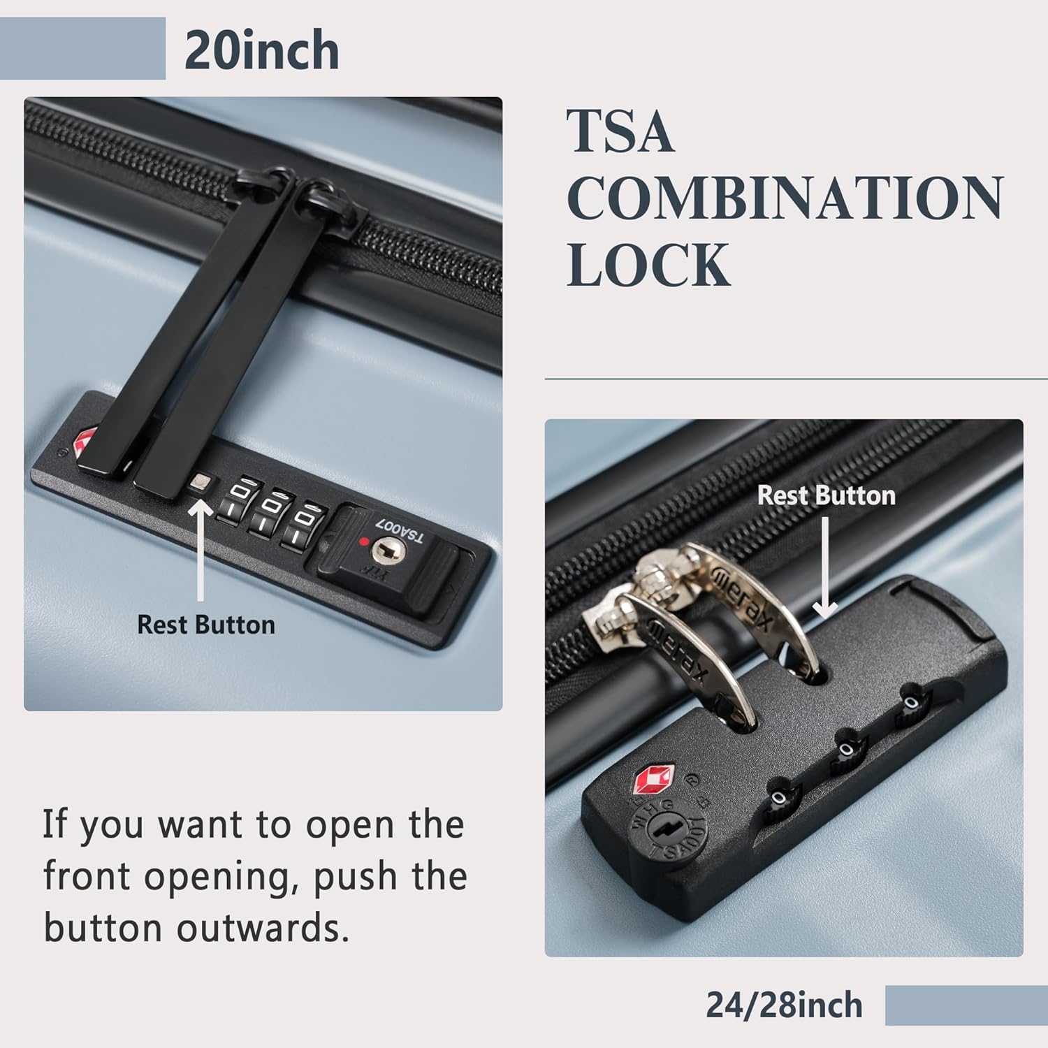 - Structure: The luggage 3 piece sets are all with horizontal stripe design.The 20-inch luggage, designed with a front-opening lid compartment, is perfect for office and travel purposes. Make your traveling efficient and comfortable. The 24/28in luggage with storage compartments, is more convenient and quick to store clothes.
