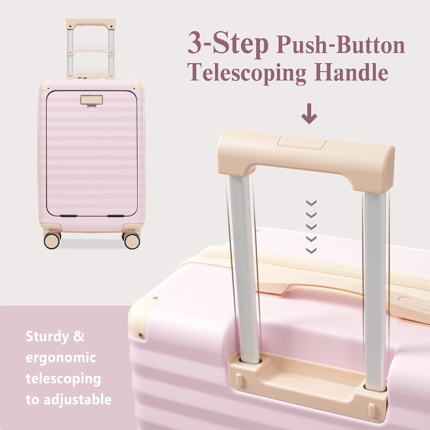 - Smart Features:The 20-inch carry-on is ideal for short trips, built-in USB port for charging devices on the go (power supply not included), keeping you connected during your travels.Cup holder on the suitcase back to hold a water bottle or a cup of coffee, freeing up your hands.