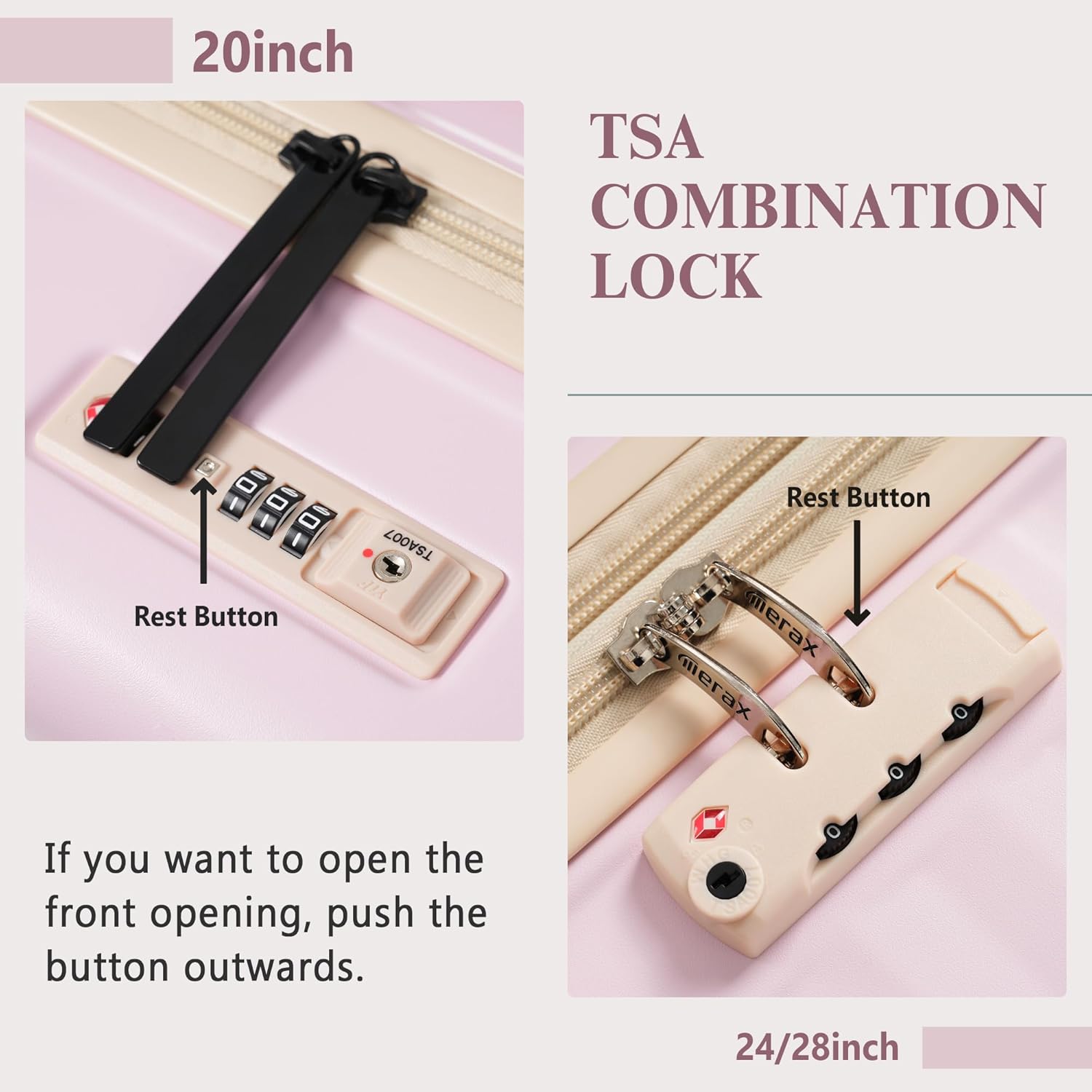 - Structure: The luggage 3 piece sets are all with horizontal stripe design.The 20-inch luggage, designed with a front-opening lid compartment, is perfect for office and travel purposes. Make your traveling efficient and comfortable. The 24/28in luggage with storage compartments, is more convenient and quick to store clothes.