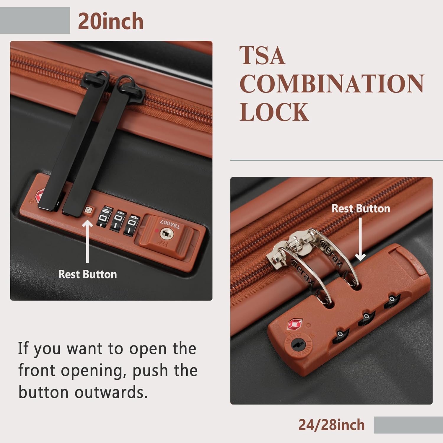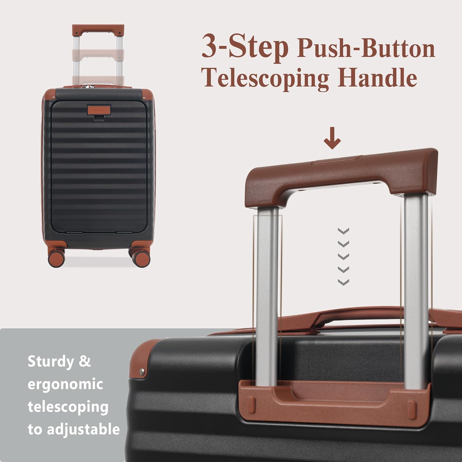 Merax Luggage Sets 3 Piece Front Opening, Hardside Lightweight Carry on Suitcase with Cup Holder USB Port,Durable Expandable Luggage with Bags Spinner Wheels and TSA Lock,Black and Brown