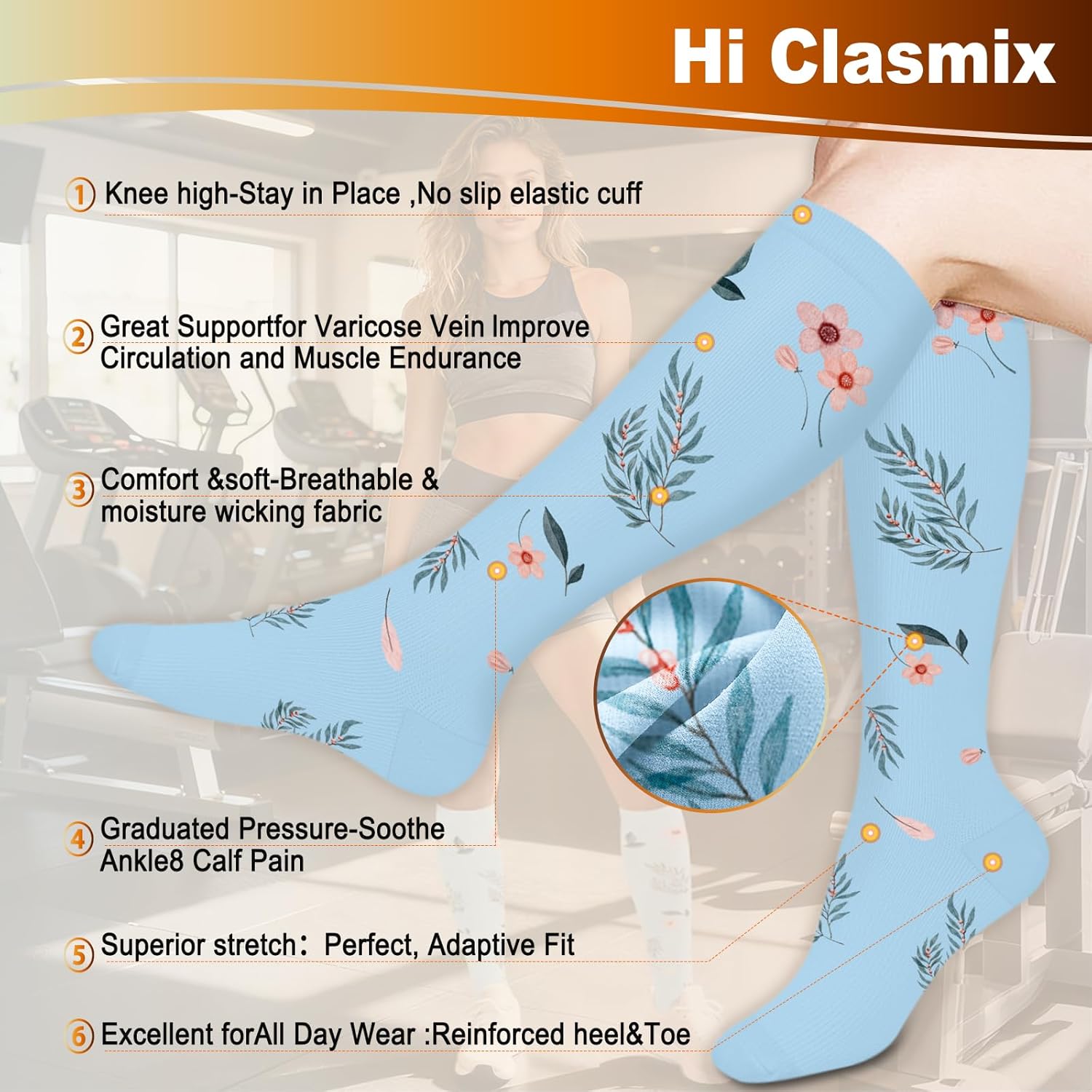 Graduated Compression Socks for Women&Men 20-30mmhg Knee High Socks Travel Hiking Running Stocking