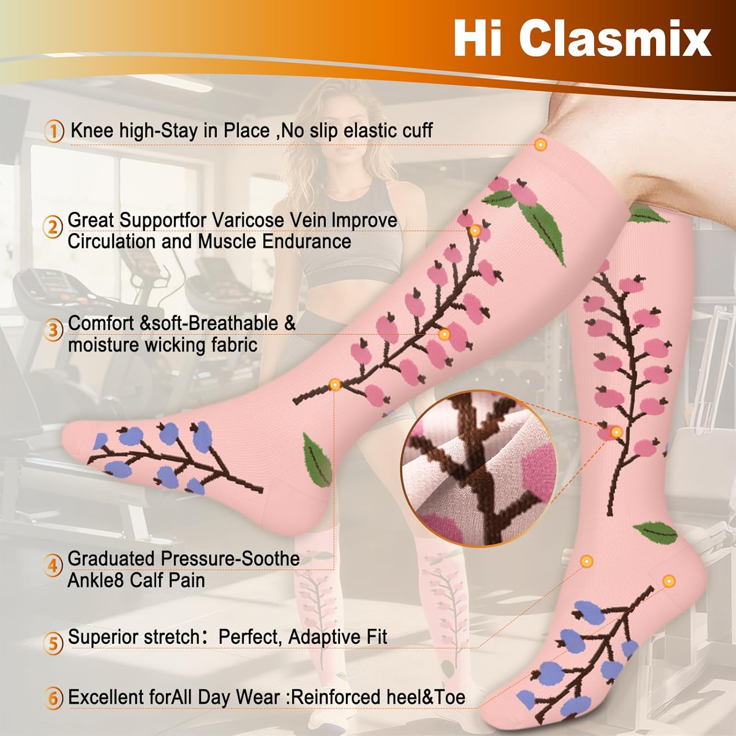 Graduated Compression Socks for Women&Men 20-30mmhg Knee High Socks Travel Hiking Running Stocking