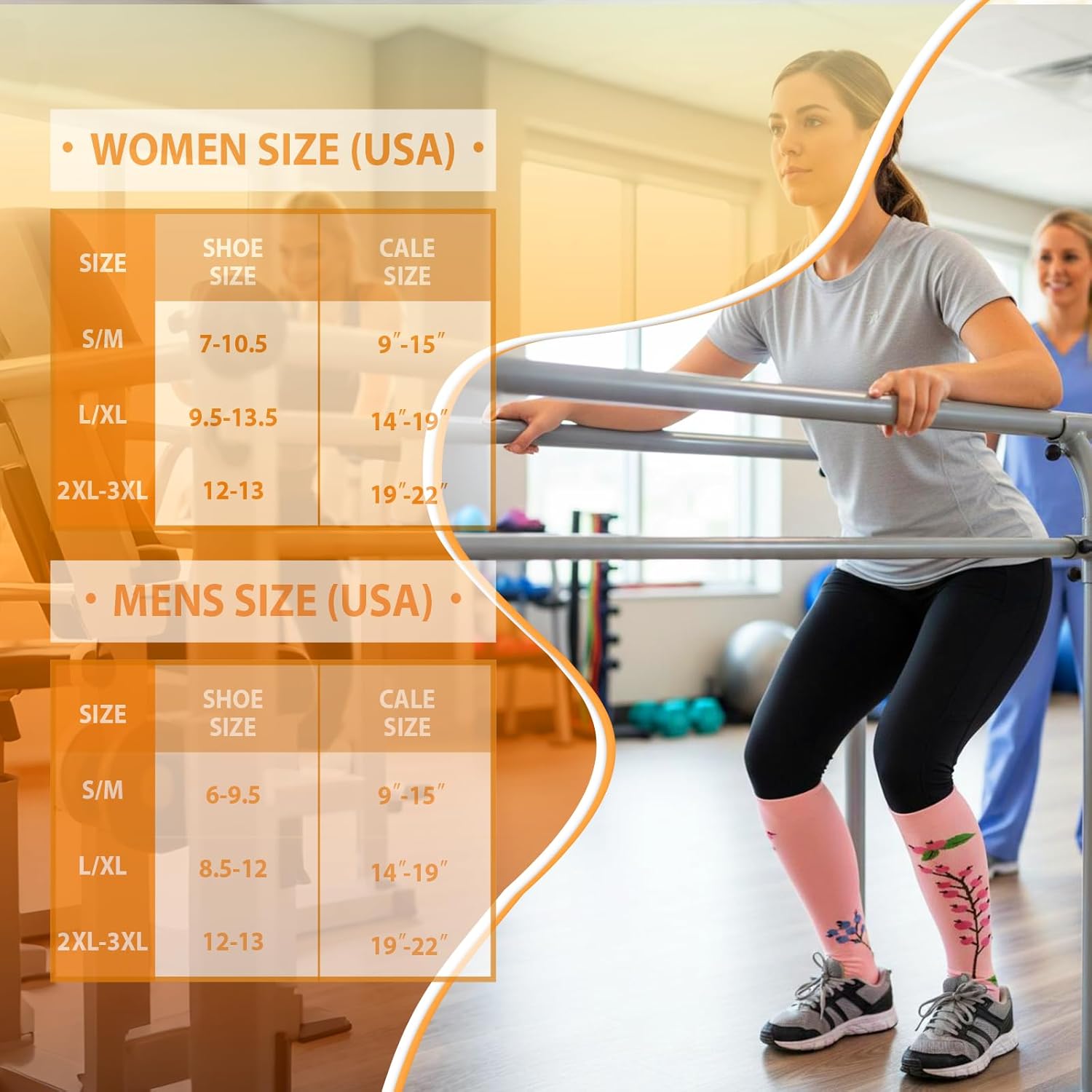 • BEST COMPRESSION SOCKS FOR WOMEN & MEN – An Excellent compression hose, very durable, and fashionable look.More Size Choice,Small-3x-large,wide calf also can find fitable size. Washable & designed with Quality Lycra Fabric, built for durability. Customers agree, that the comfort is amazing. Your durable sleeves work with your routine. It is a great gift to joggers, athletes, workout fanatics, office workers, parents or grandparents, runners, nurses and doctors.