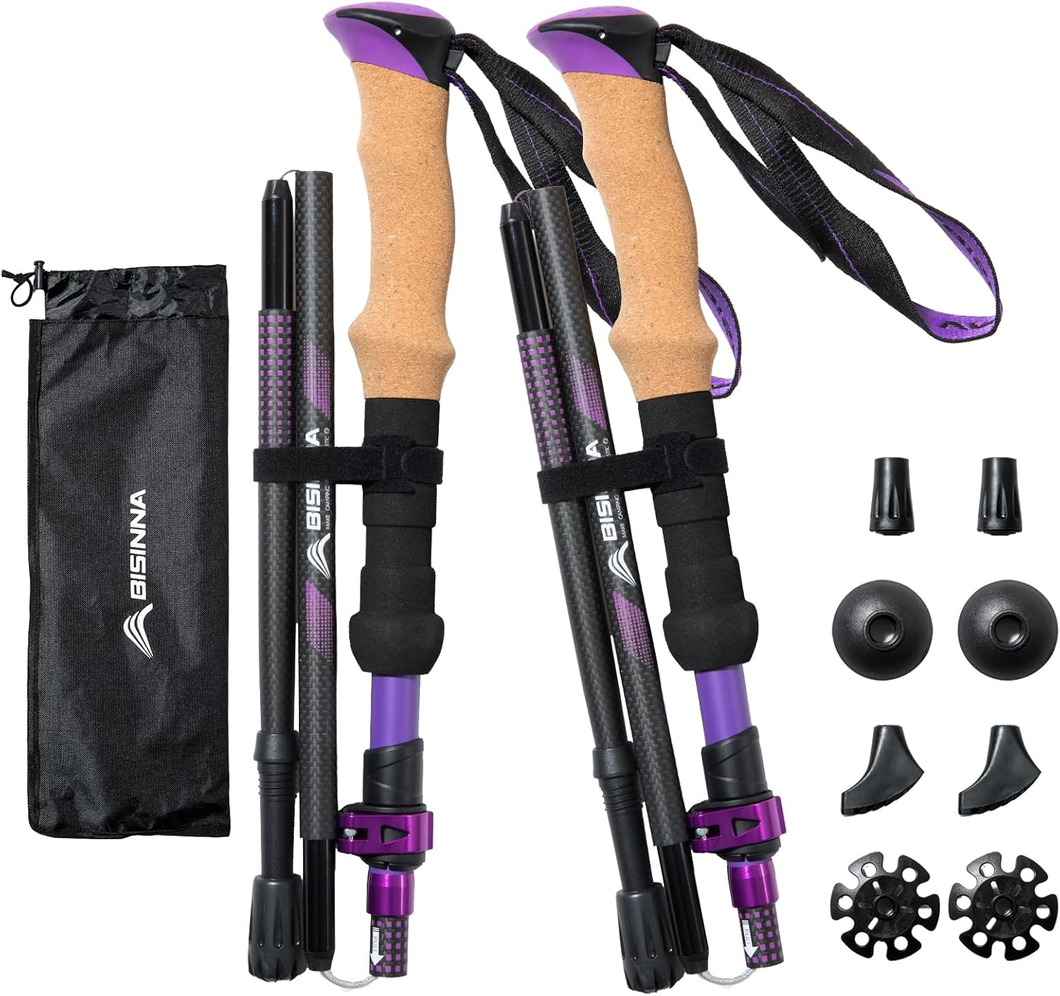 BISINNA Carbon Fiber Trekking Poles Collapsible Hiking Poles Lightweight Walking Sticks with Cork Handle Quick Lock for Women and Men 2pc