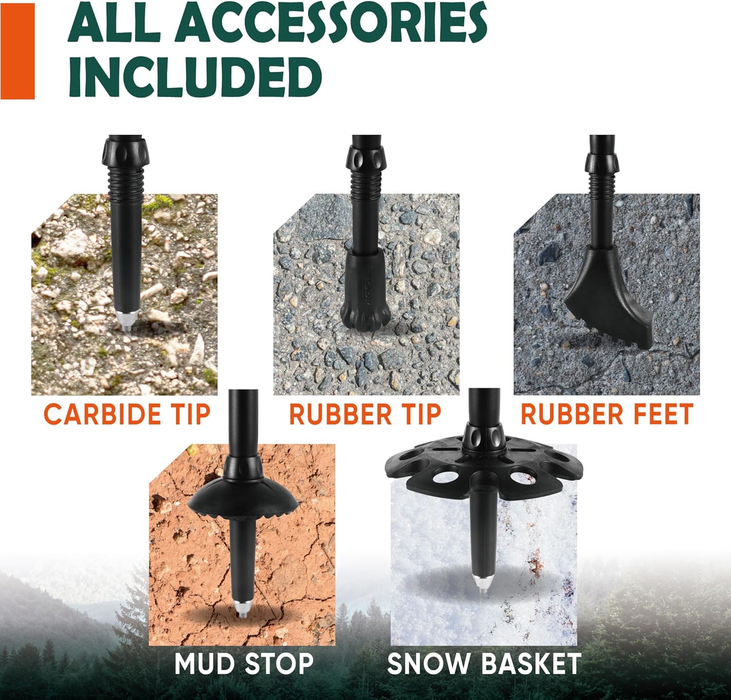 - New Design! Increase Your Foot Print! Trek-Z Ergonomic Trekking Poles (set of 2) give you reason to increase the steps you take. Providing extra support and walk comfortably with these hiking poles. Cork grip wicks away sweat from hands keeping them drier. EVA foam shafts allow for a strong grip in extreme all terrain environments. Trek-Z hiking sticks are the perfect gift for outdoor lovers who enjoy lightweight and compact hiking gear!