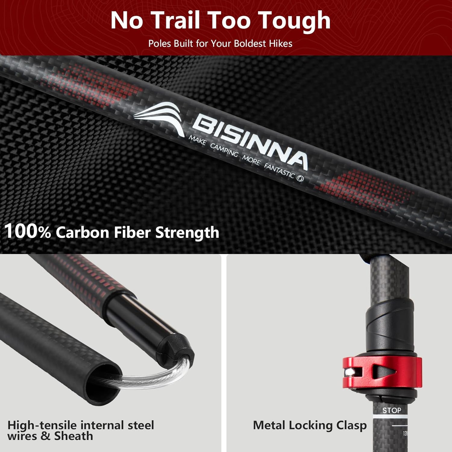 BISINNA Carbon Fiber Trekking Poles Collapsible Hiking Poles Lightweight Walking Sticks with Cork Handle Quick Lock for Women and Men 2pc