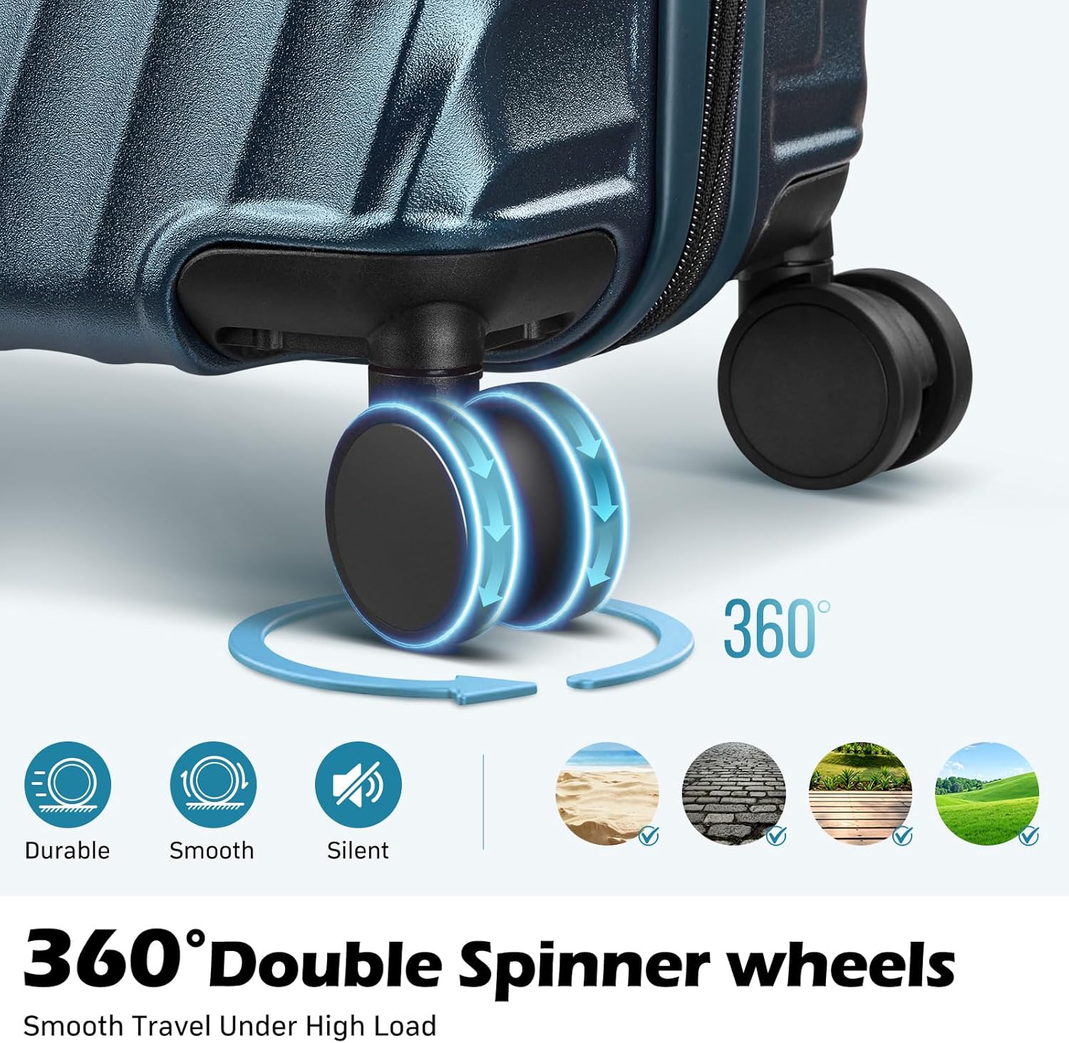 - 【Spinner Wheels and YKK Zippers】 : Experience smooth and silent travel with our advanced multi-directional spinner wheels, featuring premium soft TPU and internal lubricating balls. With 360° rotation, these wheels glide effortlessly. Each piece of luggage has successfully passed rigorous drop tests and a professional walking test, guaranteeing reliability for long journeys and business trips.Our luggage incorporates Ykk zippers, engineered for exceptional durability. Travel confidently, knowing your items are secure and easily accessible.