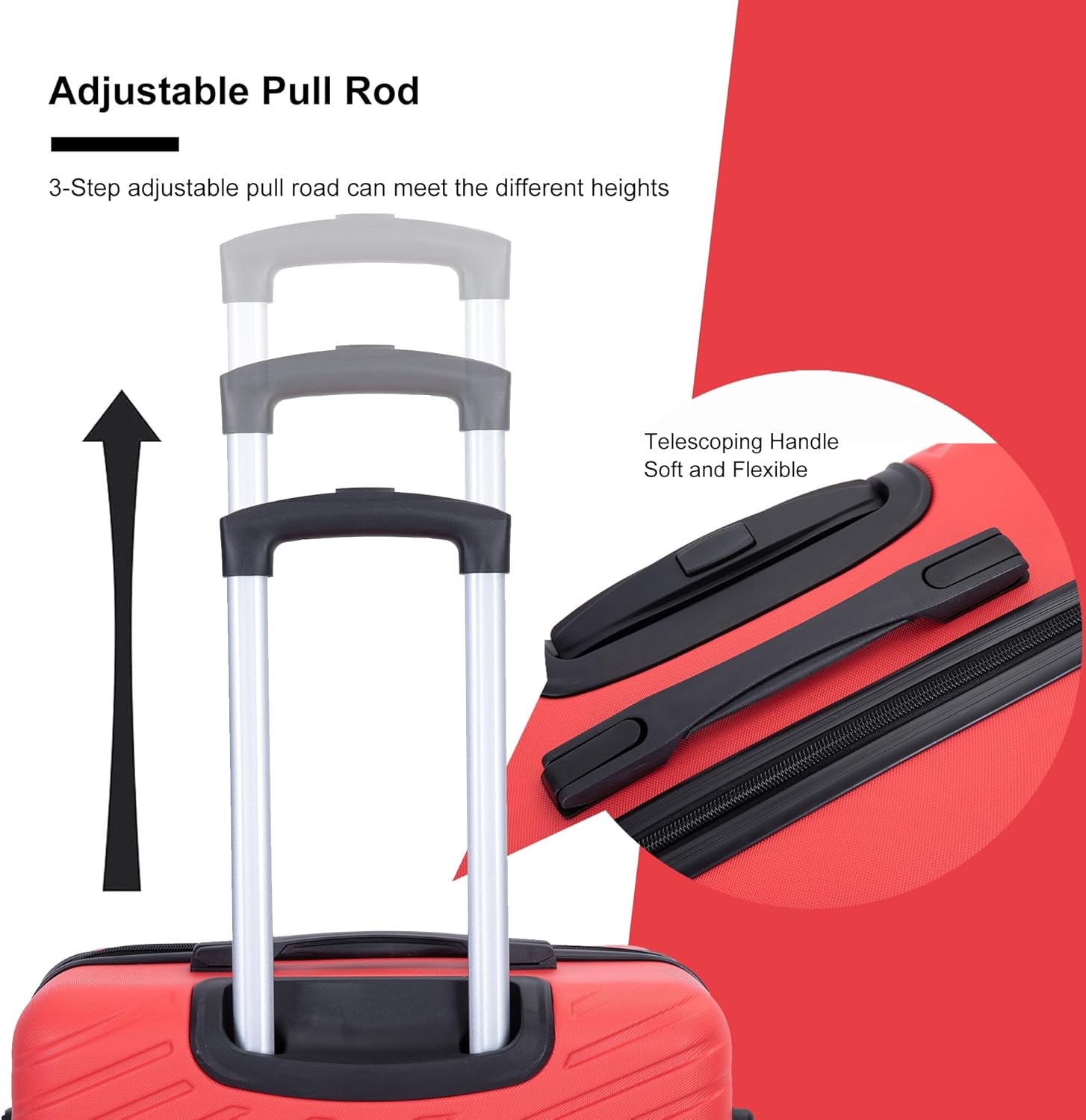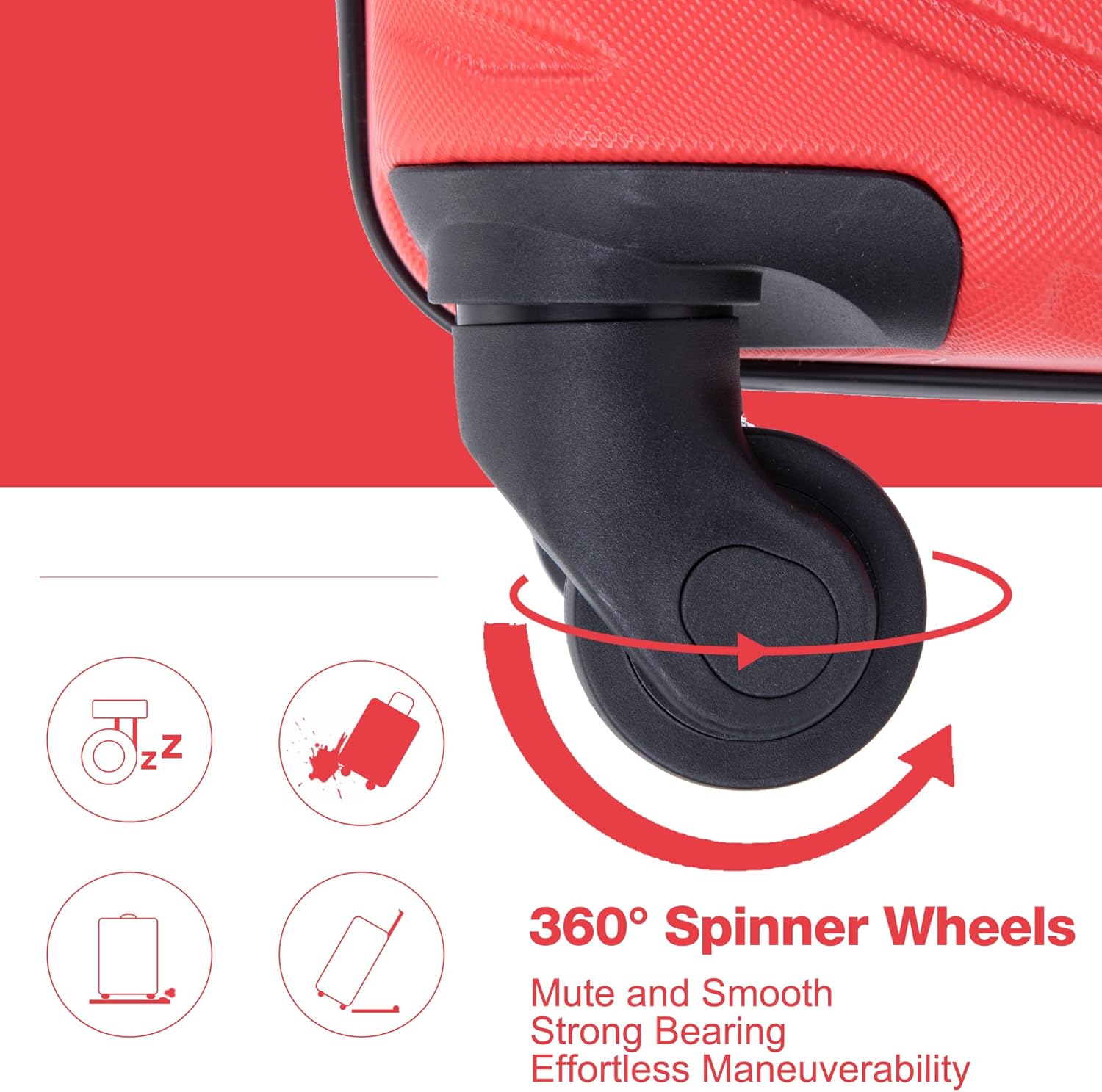 4-Piece Hardside Luggage Set with TSA Lock, Lightweight ABS Suitcases With Spinner Wheel Scratch Resistant, 16/20/24/28 inch, Vibrant Red