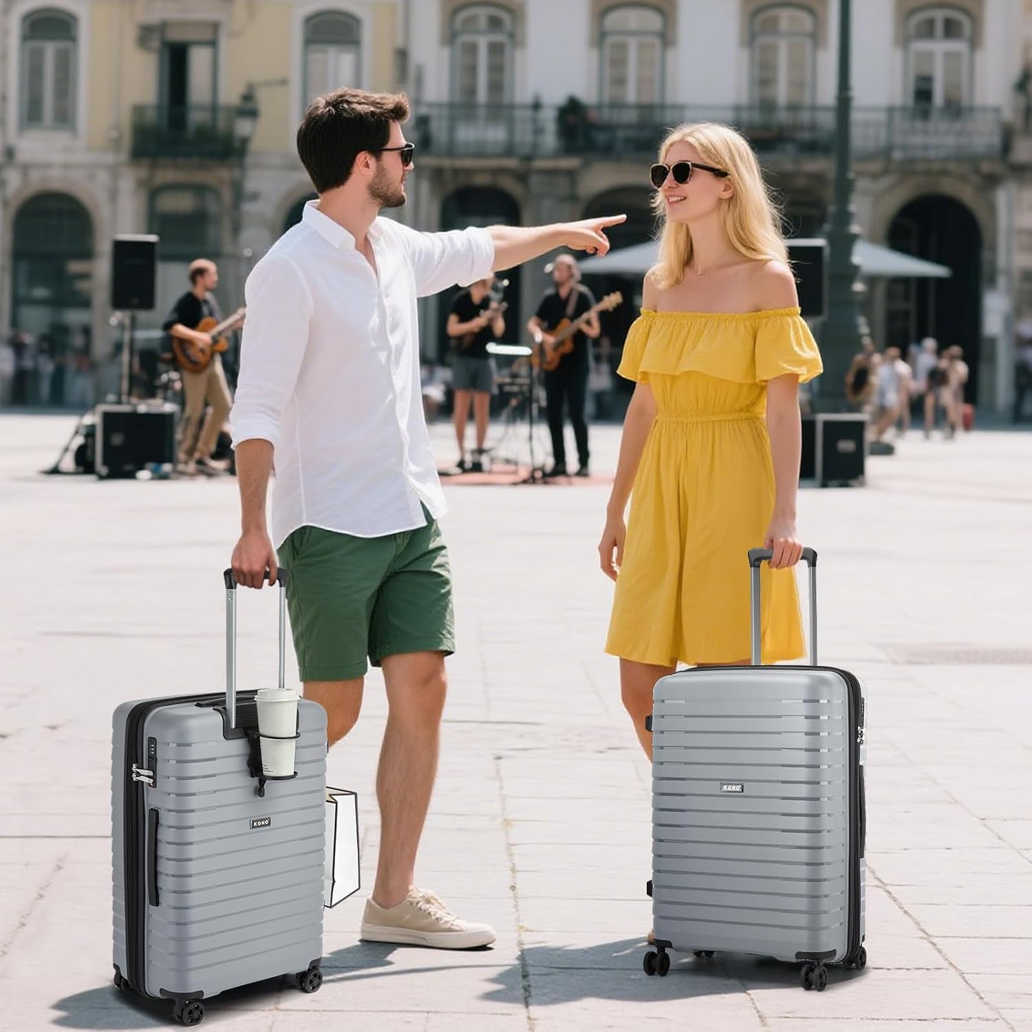 - TSA-Approved Luggage with Cup Holder: Features a TSA-accepted lock for reliable security during travel(Only authorized security personnel can open your case for inspection, preventing forced entry). Folding cup holder design to securely hold drinks or an umbrella – a practical feature you can use when needed.