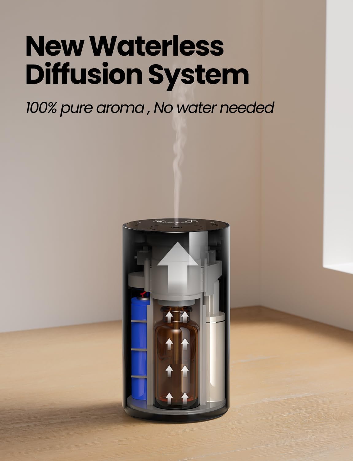 - 【Waterless Essential Oil Diffuser for Pure Aroma】Our advanced waterless diffuser technology transforms your favorite essential oils into a pure nano-mist without heat or water. Unlike traditional ultrasonic diffusers, it maintains the full strength and purity of each drop, offering a natural and convenient aroma experience. Perfect for those who want a scent diffuser that preserves essential oil integrity.