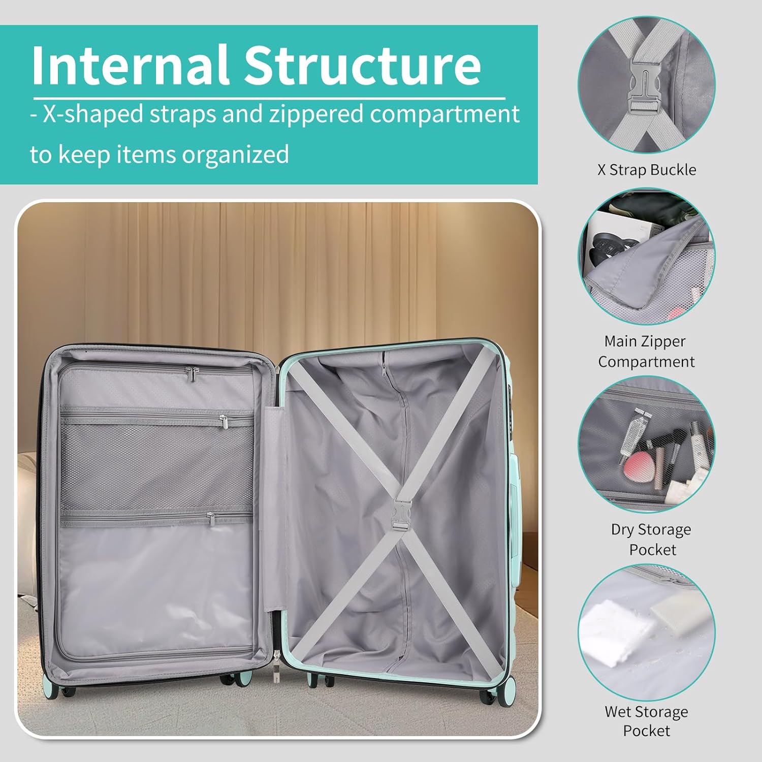 5-Piece Luggage Set, Lightweight ABS+PC Hard Shell Suitcase with YKK Zipper & TSA Lock for Family, MInt Green, 14in/18in/20in/24in/28in