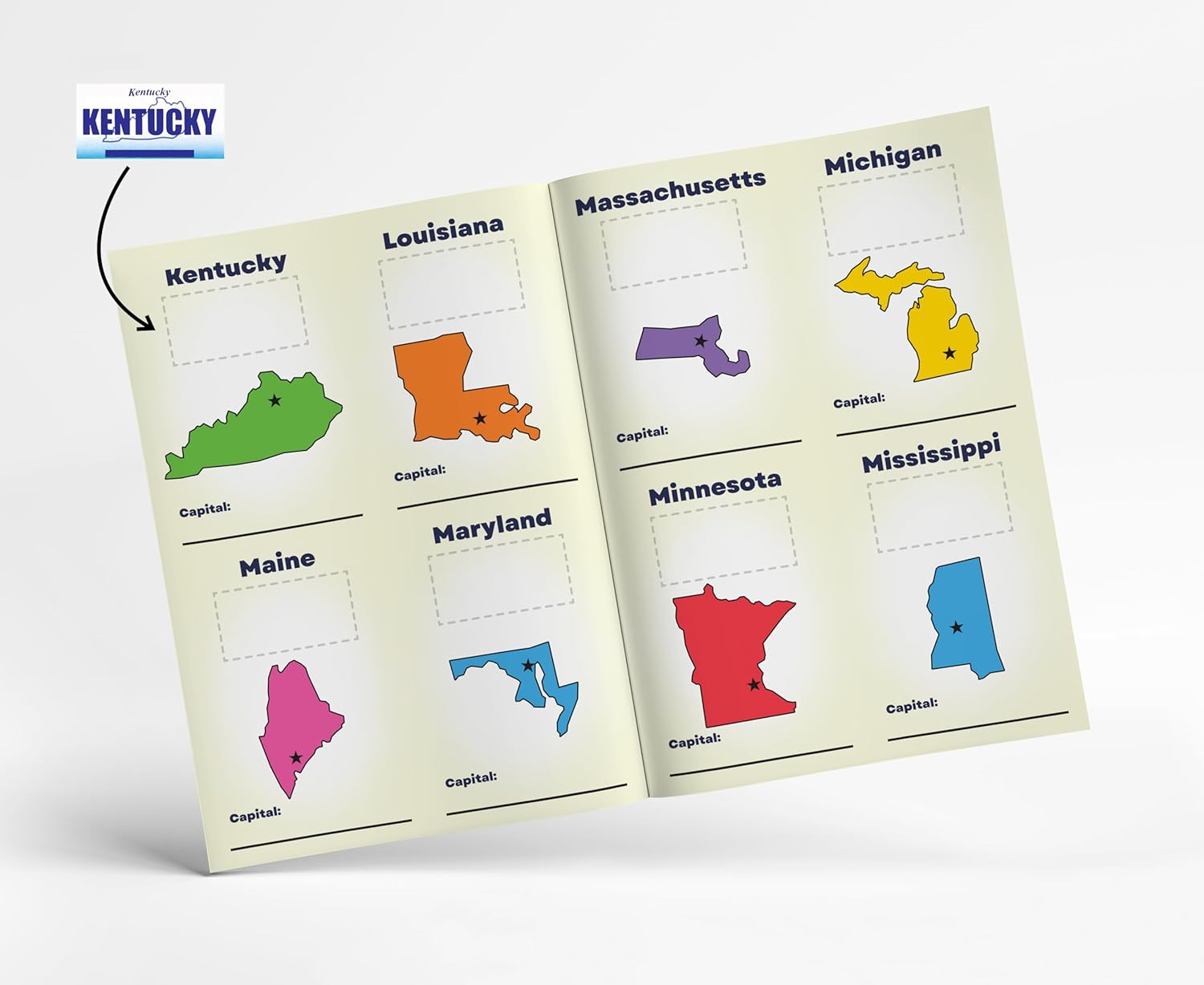 - FUN & EDUCATIONAL STICKER ACTIVITY: Kids will love finding the state and placing the corresponding colorful sticker in their book. It’s a great way to learn US geography and state recognition while playing a classic travel game.