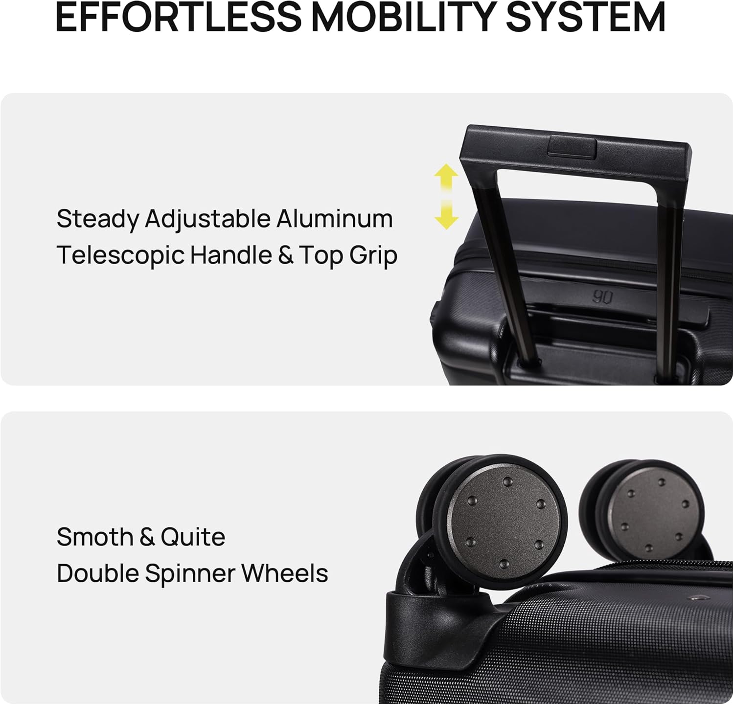 NINETYGO Carry On Luggage 22x14x9 Airline Approved, Small Suitcase with Smooth Double Spinner Wheels, Hard Shell PC Luggage Carry-On, Lightweight Travel Luggage, TSA Approved (Black, B1)