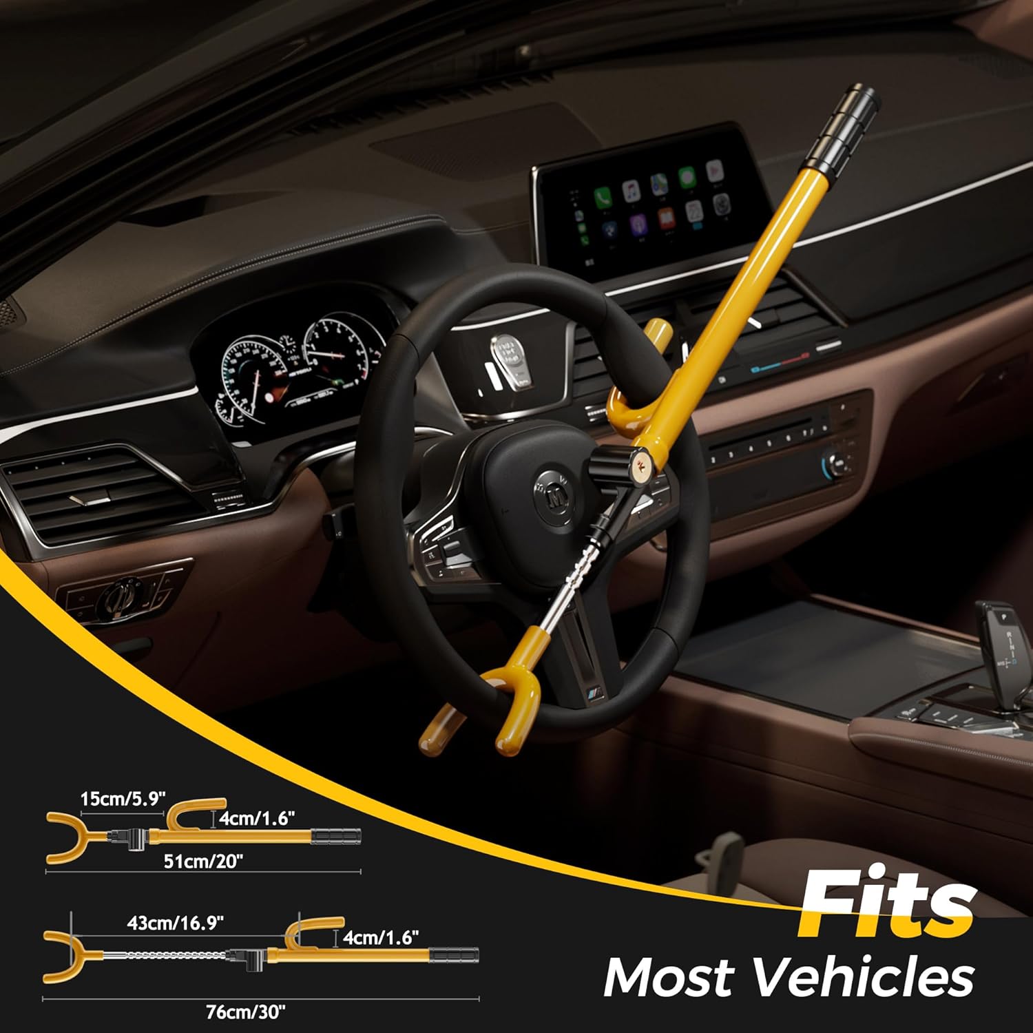 SURDOCA Car Steering Wheel Lock Anti-Theft Device, Steering Wheel Locks for Car SUV Van, Upgraded Lock Cylinder, Easy Installation, Rubber Protection, Extendable Universal Security Device, Black