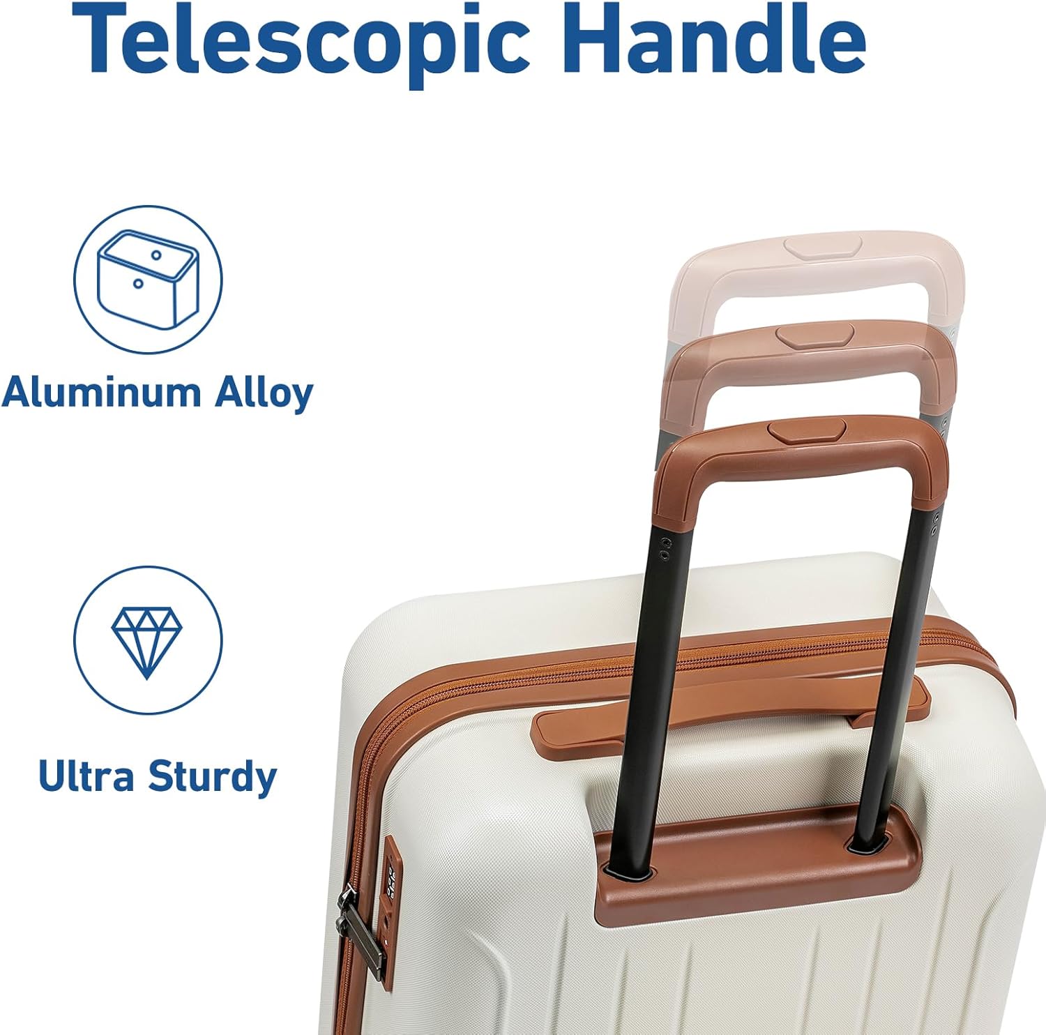 KYME Carry on luggage 22x14x9 Airline Approved Suitcase Hardshell With Double Spinner Wheels, PC+ABS TSA Lock Travel Luggage (Beige, 20" Carry On)