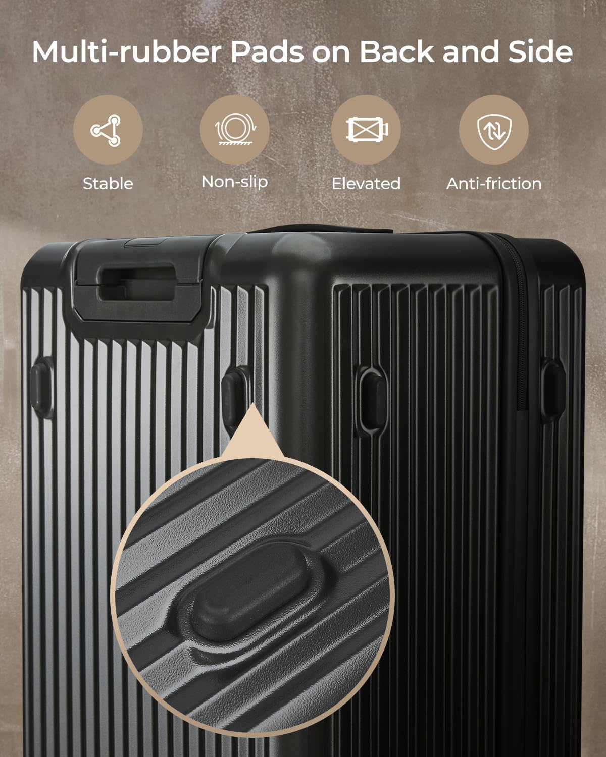 - Practical and Simple: 8 silent universal wheels for smooth rolling; multi adjustable telescoping ergonomic handle for easy control; 3 rubber handles for convenient gripping; anti-scratch pads on the back and sides protect the luggage from wear and tear