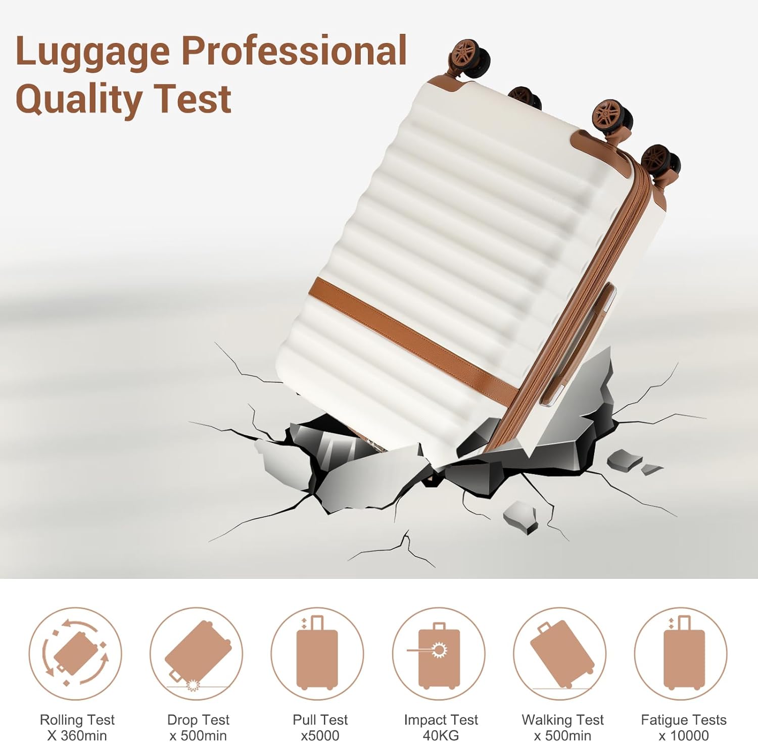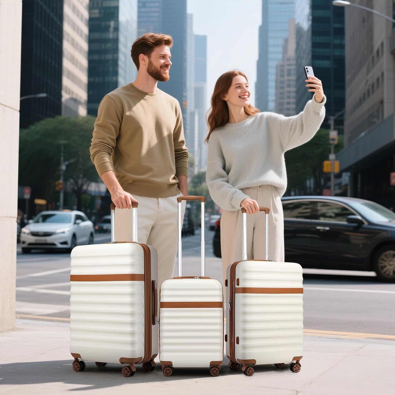 Kono Luggage Set 3 Pieces Expandable ABS Durable Suitcase Hardside with Double Spinner Wheels Tsa Lock Cream White(20in/24in/28in)