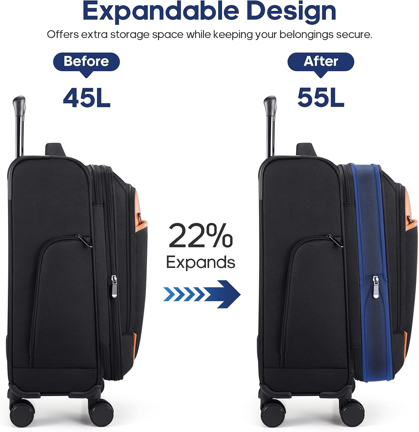 UKEIN Softside Expandable Carry On Luggage 22x14x9 Airline Approved, 20 Inch Carry On Suitcase with Wheels & TSA Lock, Travel Suitcase with 4-Piece Packing Bags for Women Men