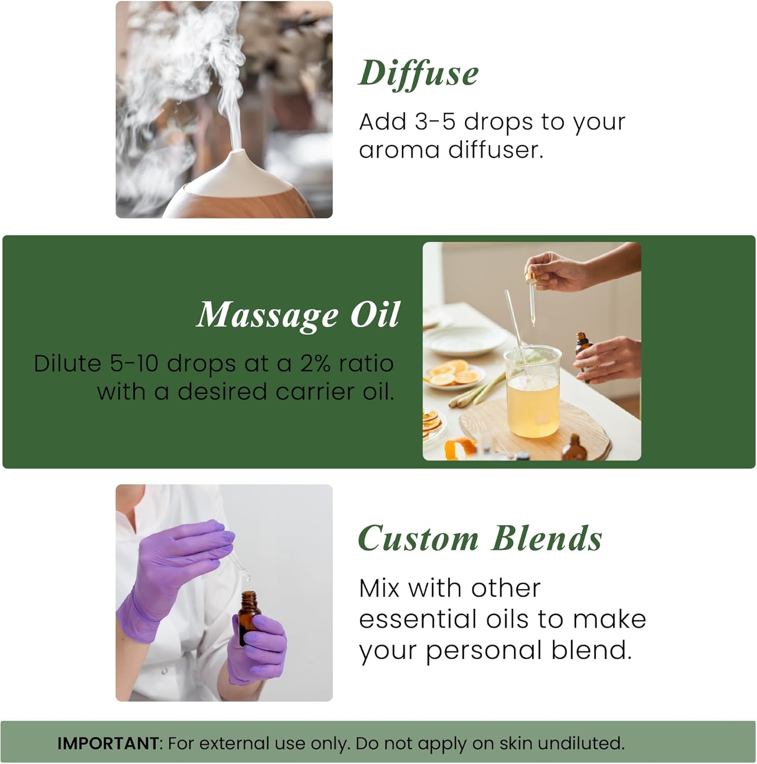 - HIGH QUALITY GLASS BOTTLE AND DROPPER – Our essential oil comes in an amber glass bottle to keep out UV rays and protect the oil against sunlight. We also provide a glass dropper, so you get the exact amount of oil without any waste.