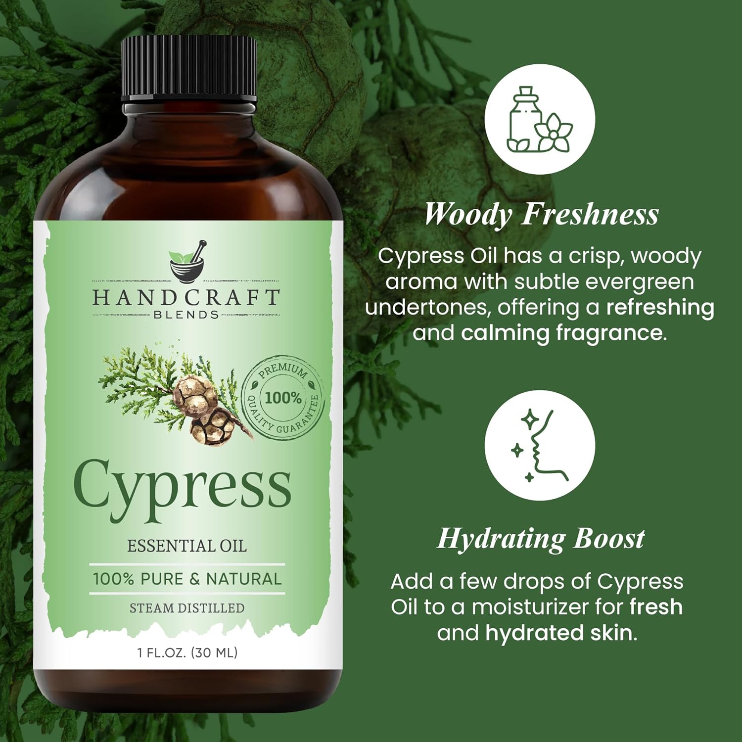 - 100% PURE & NATURAL CYPRESS OIL - Handcraft Blends oils are exactly that! Many oils being sold make that claim but are in fact made of natural isolates and mixtures. Each essential oil is tested by an independent lab which is why every bottle comes with a Quality Guarantee.