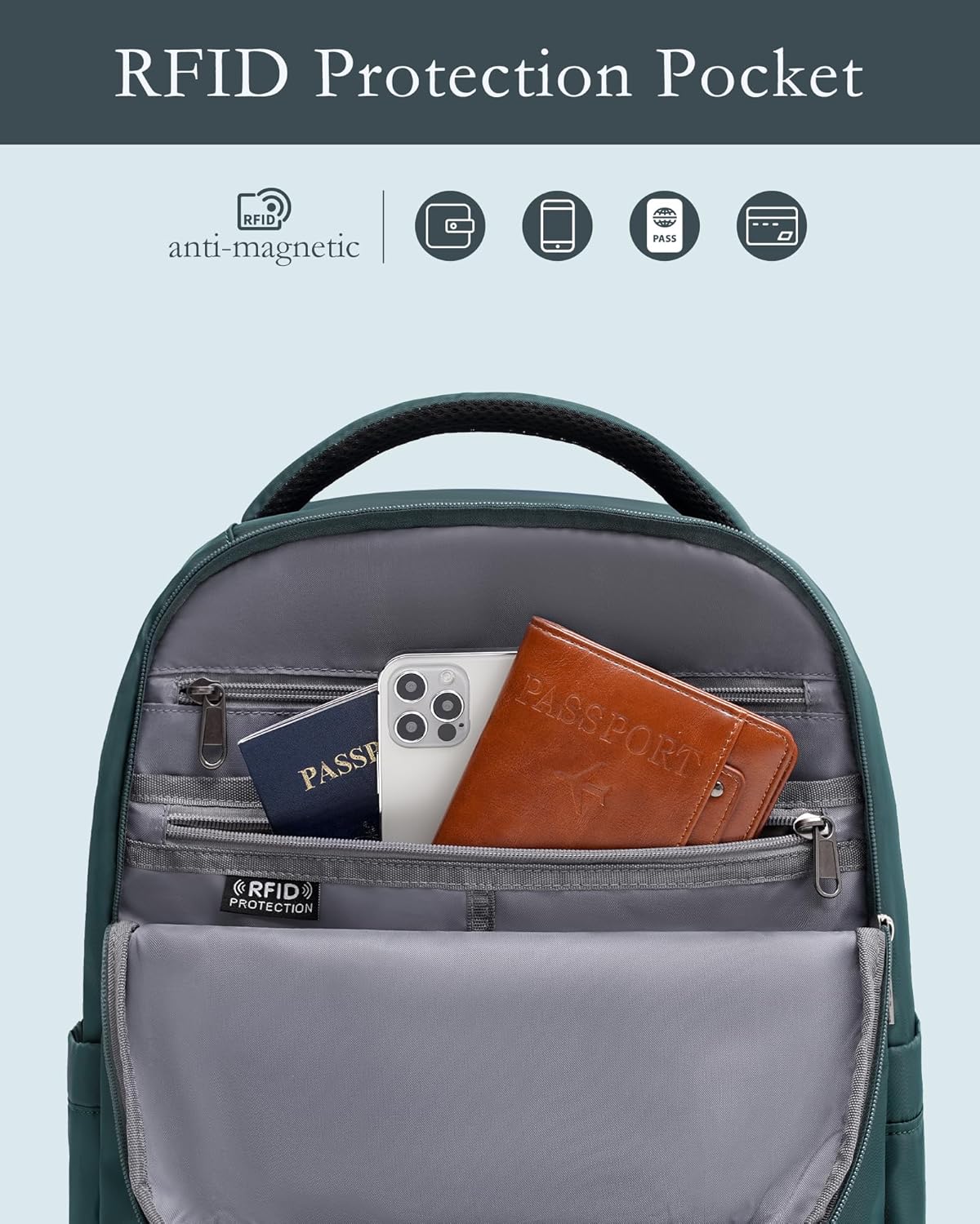 - Versatile Backpack: The backpack features multiple functional pockets, including RFID-blocking pocket, padded laptop compartment, and dry/wet separation pocket to accommodate various needs, The backpack features luggage straps on the back that can be looped over the handle of a suitcase, freeing up your hands.