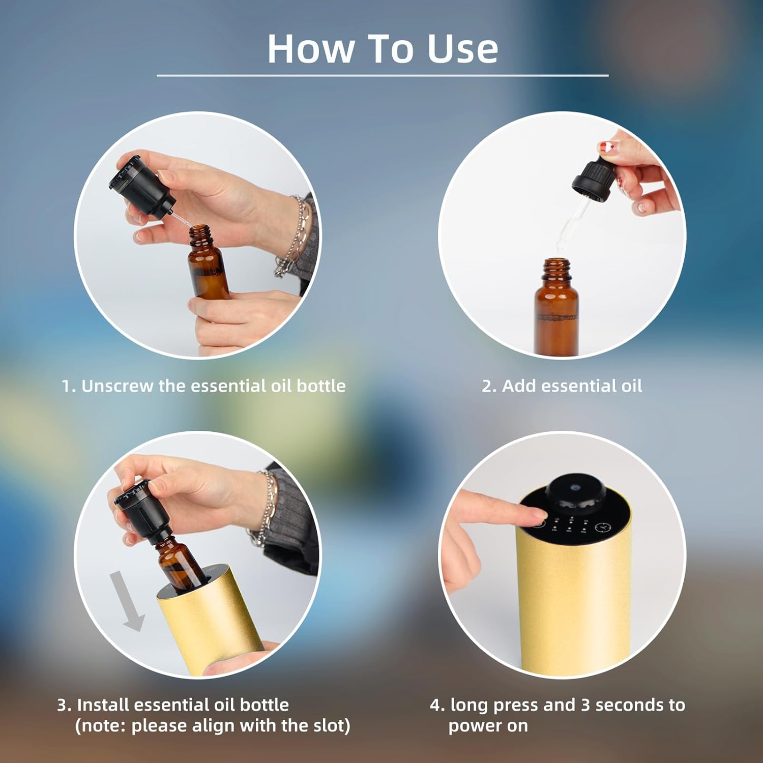 Waterless Essential Oil Diffuser for Home Battery Operated Cordless Scent Diffuser with Timing & 3 Mist Levels car Diffuser, Aluminum Alloy