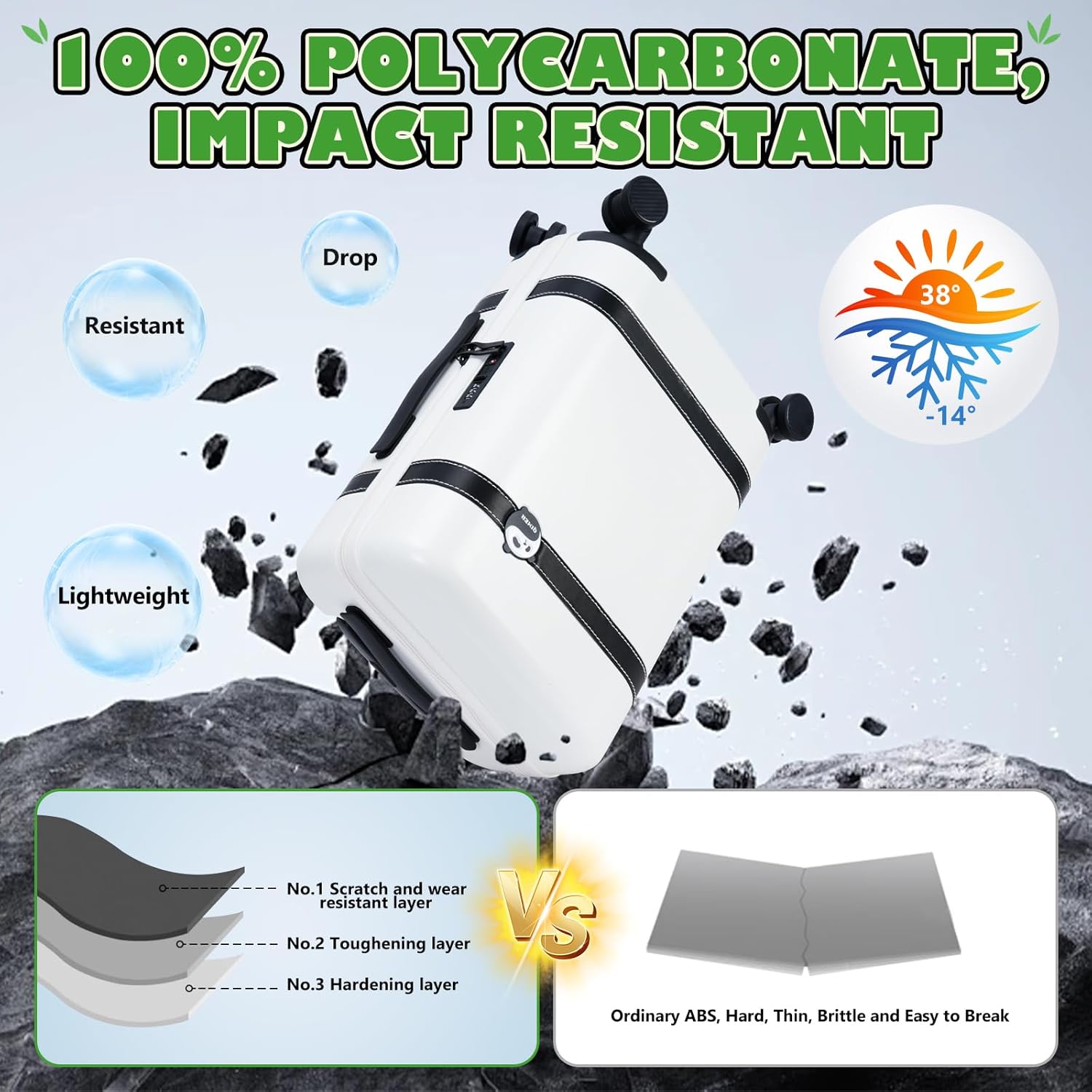 - High-quality carry-on: This hardshell travel suitcase is made of 100% polycarbonate (PC), offering exceptional strength, flexibility, lightness, and durability. Its sharp, scratch-resistant texture ensures the hardshell remains beautiful through numerous trips. This is a wheeled underseat carry-on.