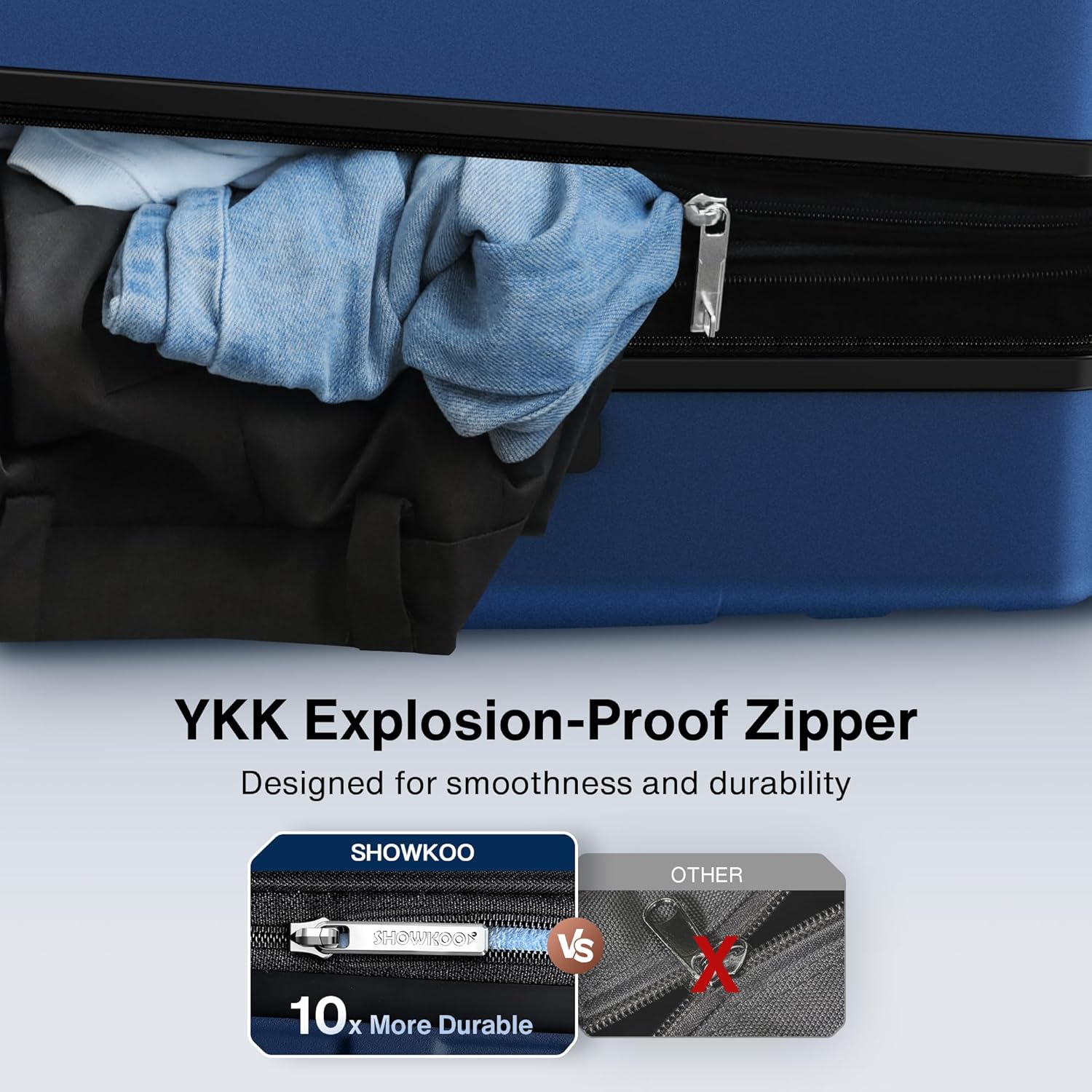 - Durable YKK Zipper & Expand 25%: Featuring YKK high-strength anti-burst zippers, rigorously tested for 100,000 cycles without failure—ensuring smooth operation and zero risk of zipper jams or splits, even under extended travel use. Use the expandable zipper, the suitcase easily releases an additional 25% of its capacity, maximizing your packing flexibility (Only 24in & 28in).