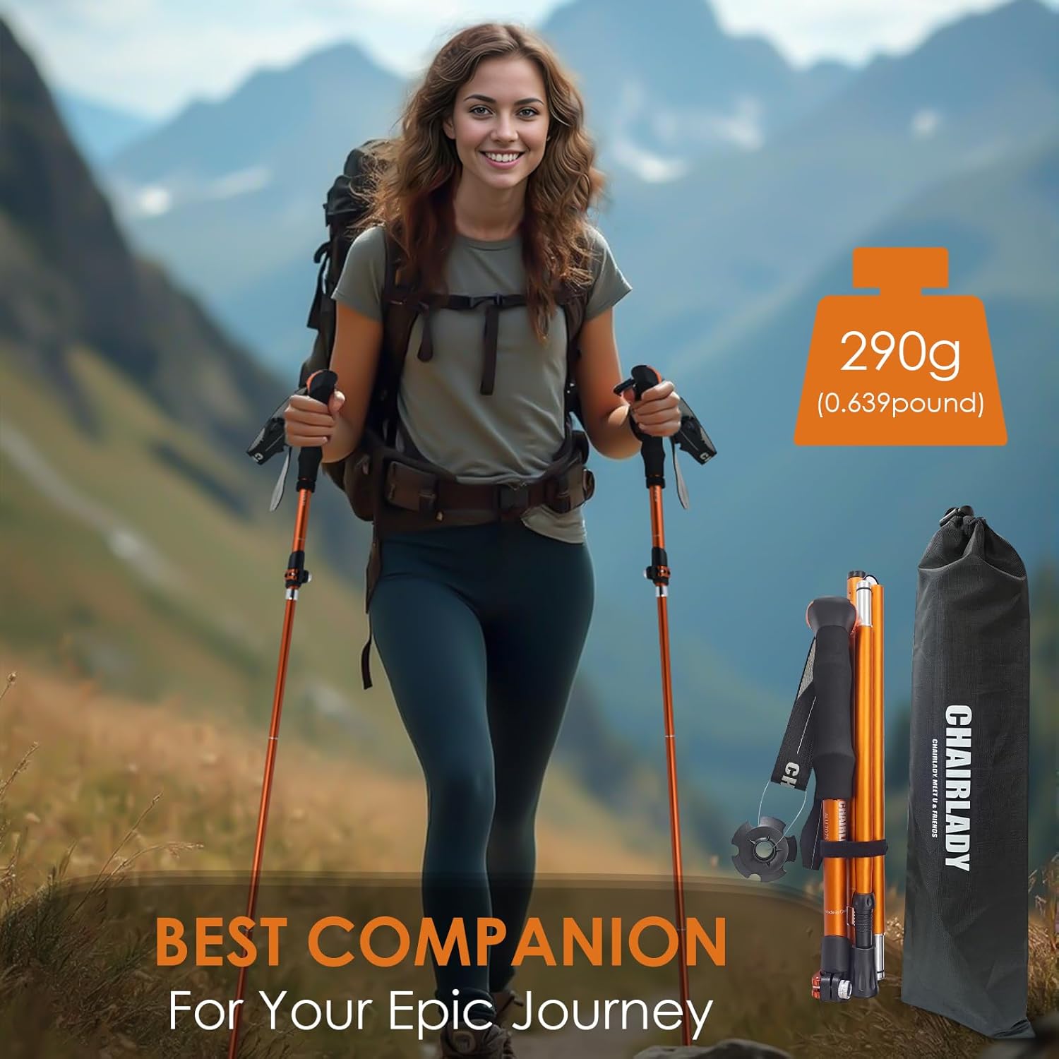 - 【Instant-Collapse Design for Hassle-Free Travel】 Foldable trekking poles snaps down to a compact 13.8 inches in seconds - easily tucks into backpacks or carry-ons. A game-changer for jetsetting adventurers and backpackers who demand space-saving gear that doesn't compromise trail performance.