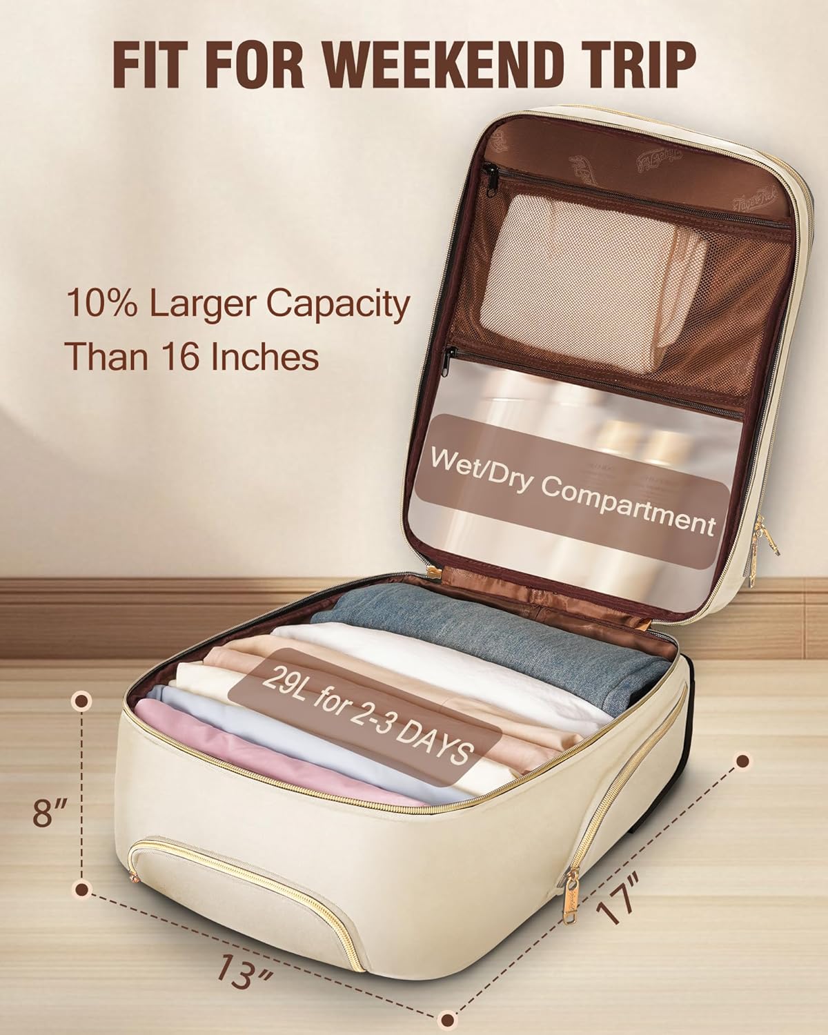 - LIGHTWEIGHT TRAVEL STORAGE: The travel suitcase is ideal for weekend travel or business trips, and it comes with a packing cube for toiletries organization. The women's luggage has two main zippered compartments, one of which is padded for a laptop, and multiple convenient pockets for your passport, travel documents, etc.