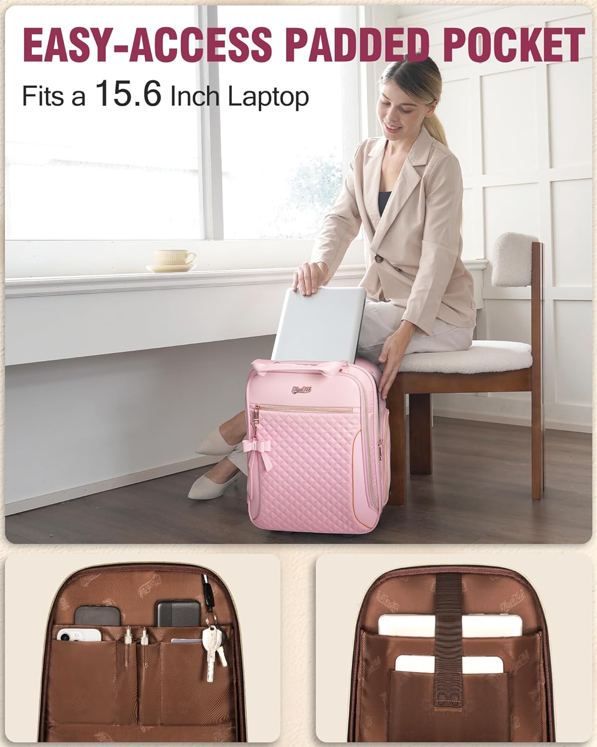 - LIGHTWEIGHT TRAVEL STORAGE: The travel suitcase is ideal for weekend travel or business trips, and it comes with a packing cube for toiletries organization. The women's luggage has two main zippered compartments, one of which is padded for a laptop, and multiple convenient pockets for your passport, travel documents, etc.