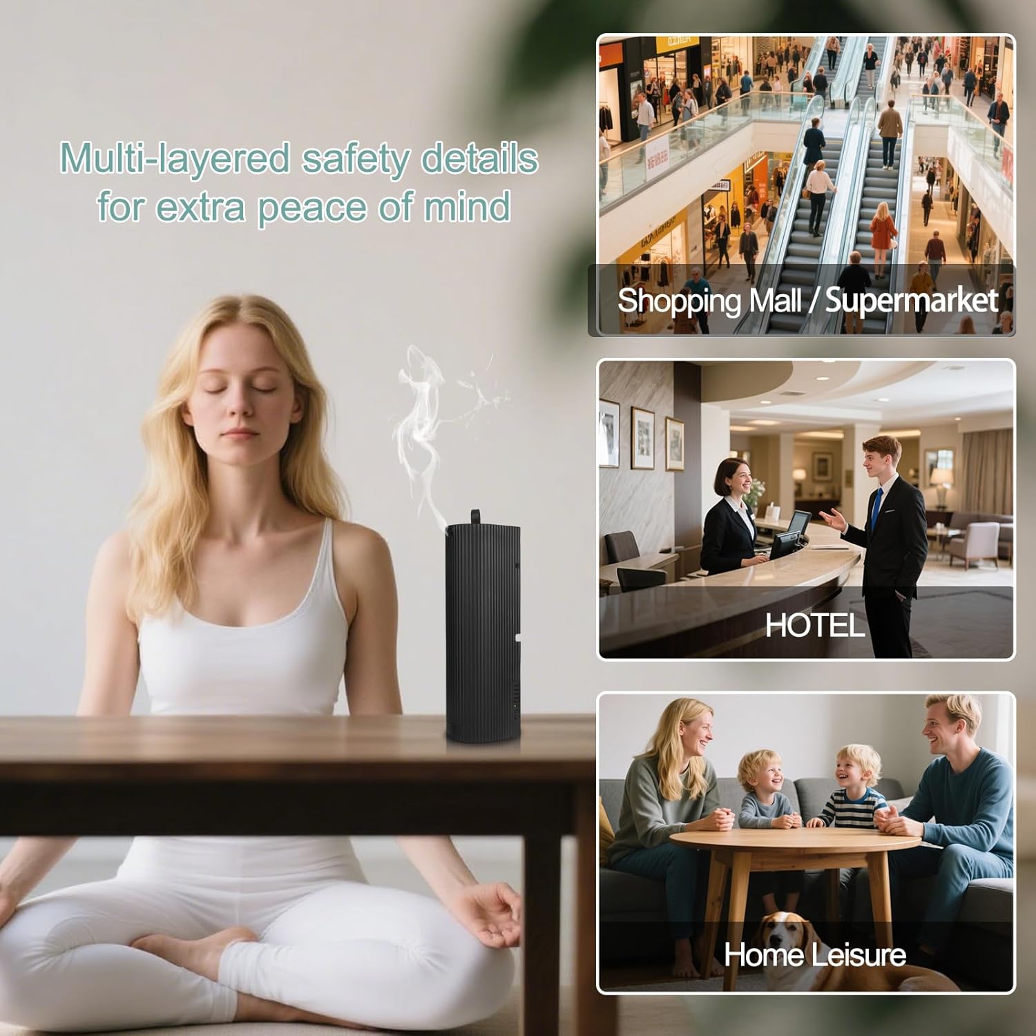 - Wide Coverage Area: This waterless oil diffuser is perfect for both home and hotel use, covering spaces up to 3,200 sq. ft. (300 m²). It is compatible with most standard essential oils and blends.