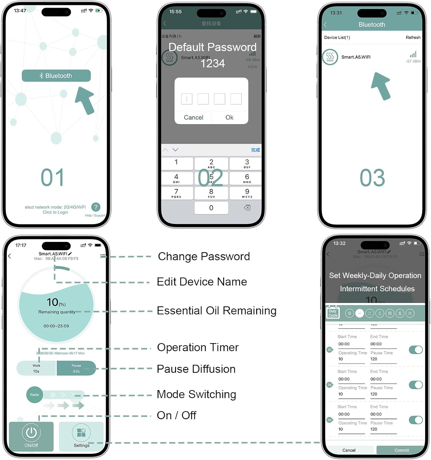 - Smart Bluetooth & WIFI & App Control: Easily control the diffuser through a dedicated mobile app (iOS/Android compatible). Set custom schedules and settings—ideal for homes, offices, hotels, spas, retail spaces, cafes, libraries, and more.