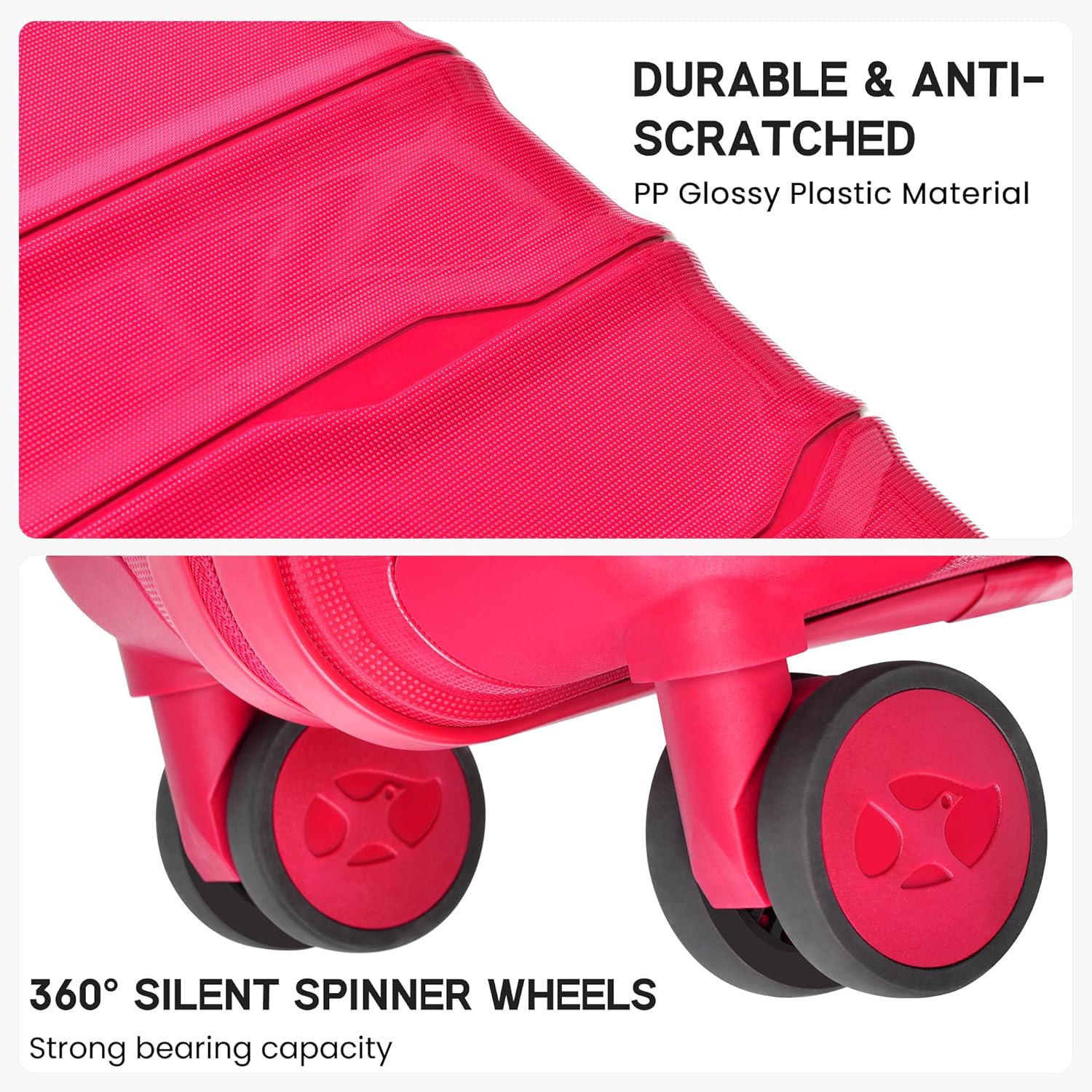 MGB Medium Luggage with Spinner Wheels Lightweight PP Hybrid Shell Suitcase With TSA Lock, Checked-Medium Luggage for Travel, Amaranth Red