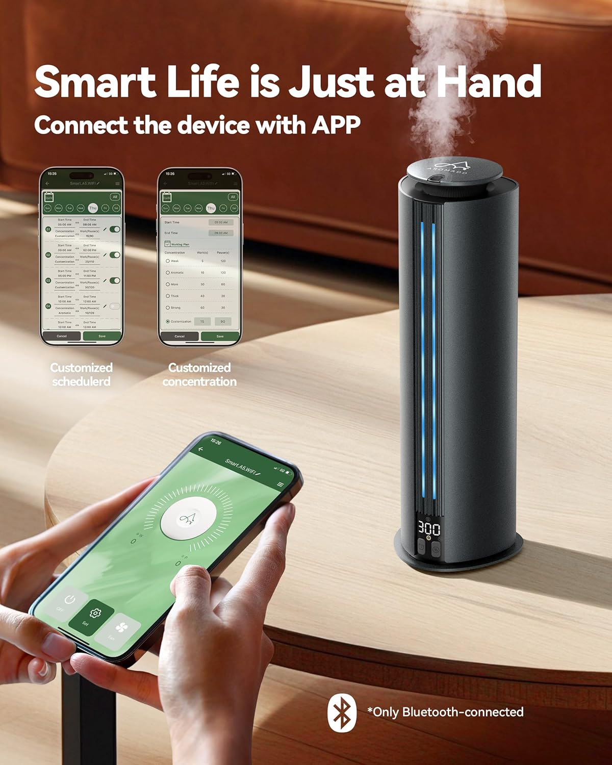 - Smart & Simple Control – Adjust scent intensity and schedule run times right from the companion app, or use the easy-access buttons for quick changes. This waterless diffuser gives you full control, your way. With a generous 100mL capacity, spend more time enjoying your fragrance and less time refilling with this scent diffuser