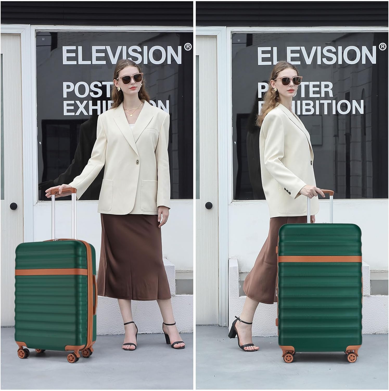 Kono Expandable 28 Inch Large Checked Luggage: ABS+PC Hardside Trolley Travel Case - Hard Shell Suitcase with TSA Lock,Green