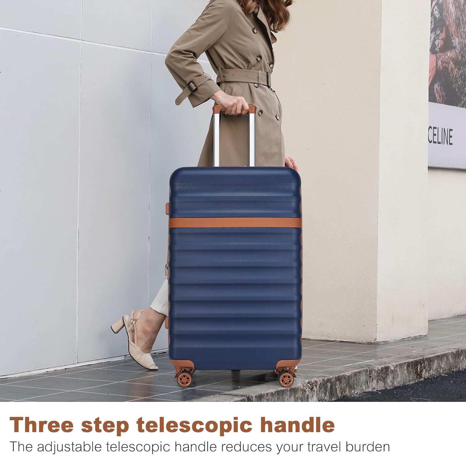 Kono Expandable 28 Inch Large Checked Luggage: ABS+PC Hardside Trolley Travel Case Hard Shell Suitcase with TSA Lock,Navy