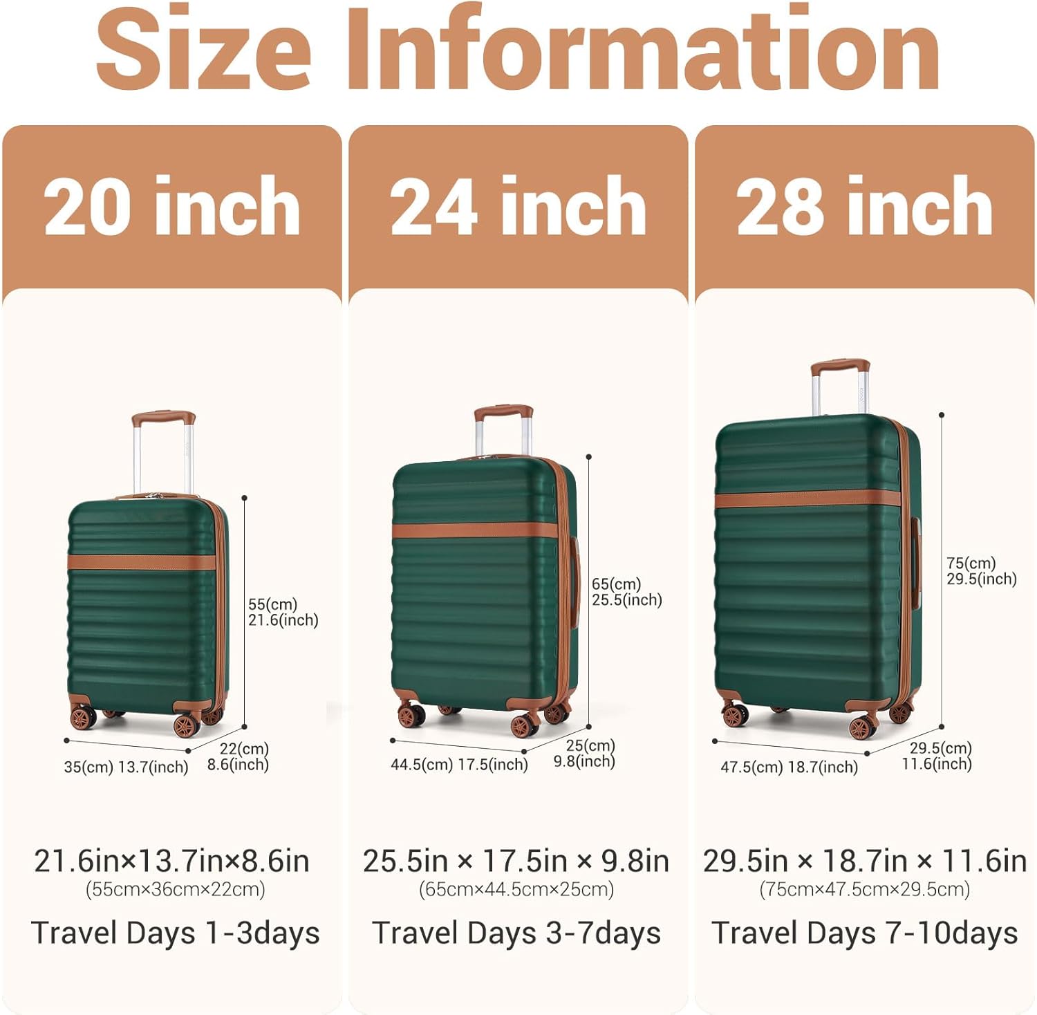 - 【Family Travel Preferred】This 3-piece luggage set (20”/24”/28”) is ideal for family trips! Each size meets different packing needs, from short getaways to long vacations. Spacious and organized, it makes traveling with the whole family a breeze.
