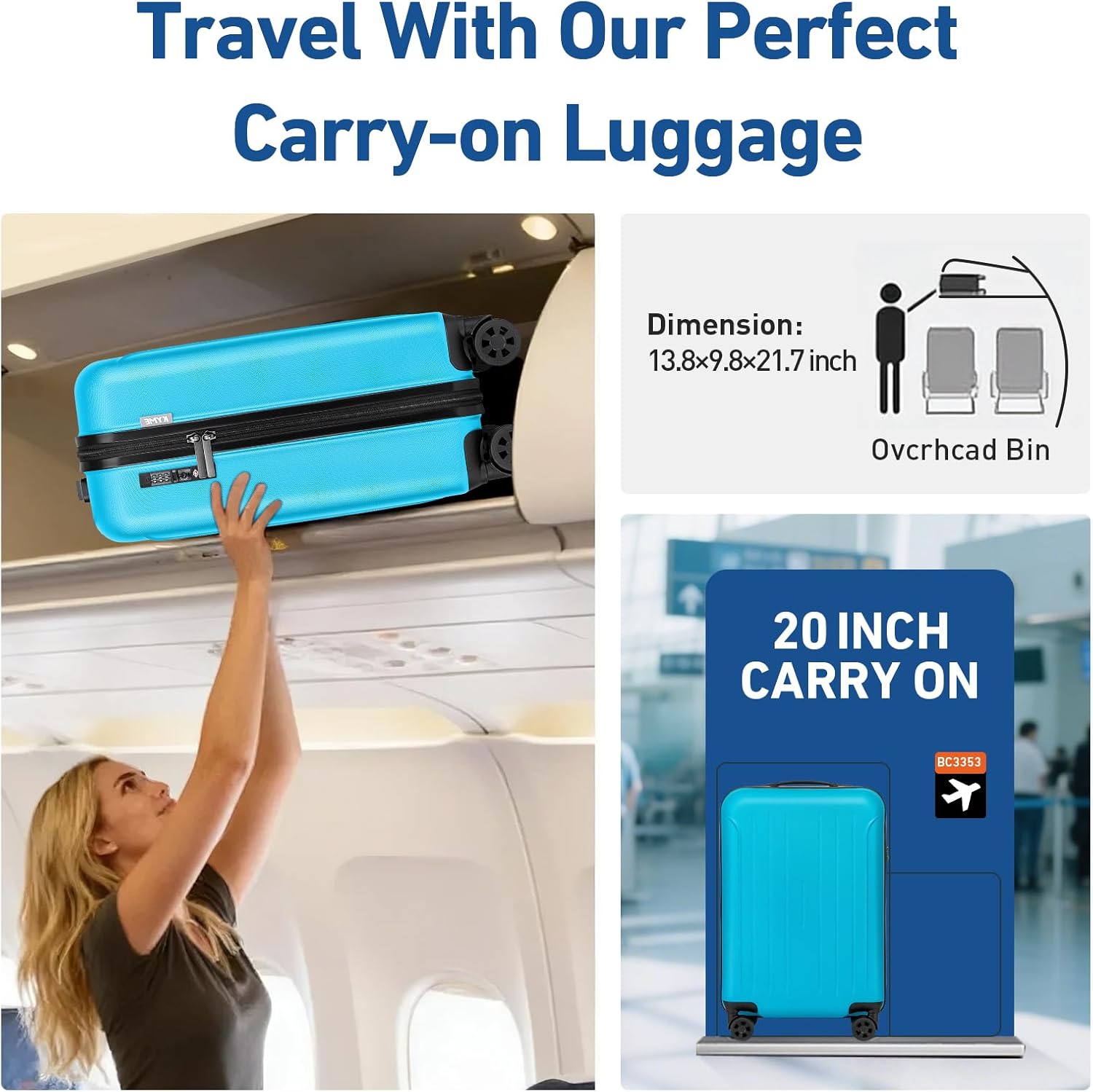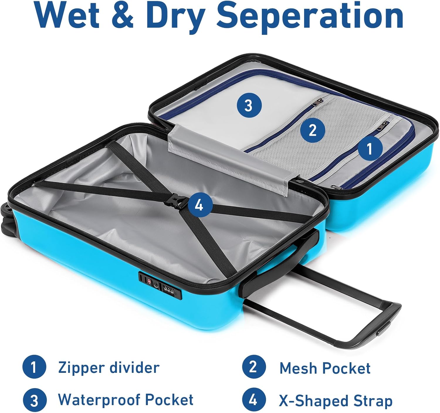 KYME Carry on luggage 22x14x9 Airline Approved Suitcase Hardshell With Double Spinner Wheels, PC+ABS TSA Lock Travel Luggage (Ocean Blue, 20" Carry On)