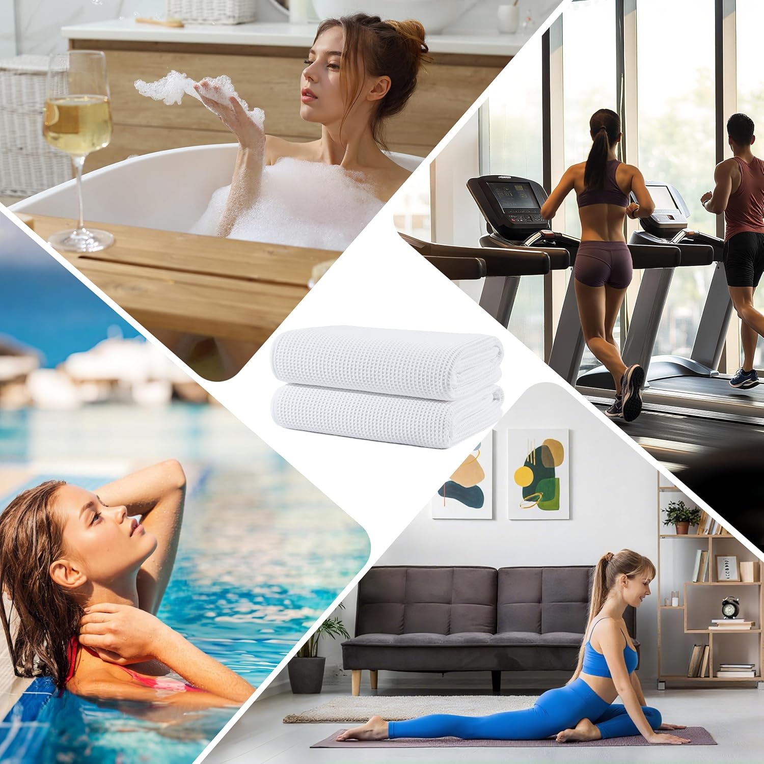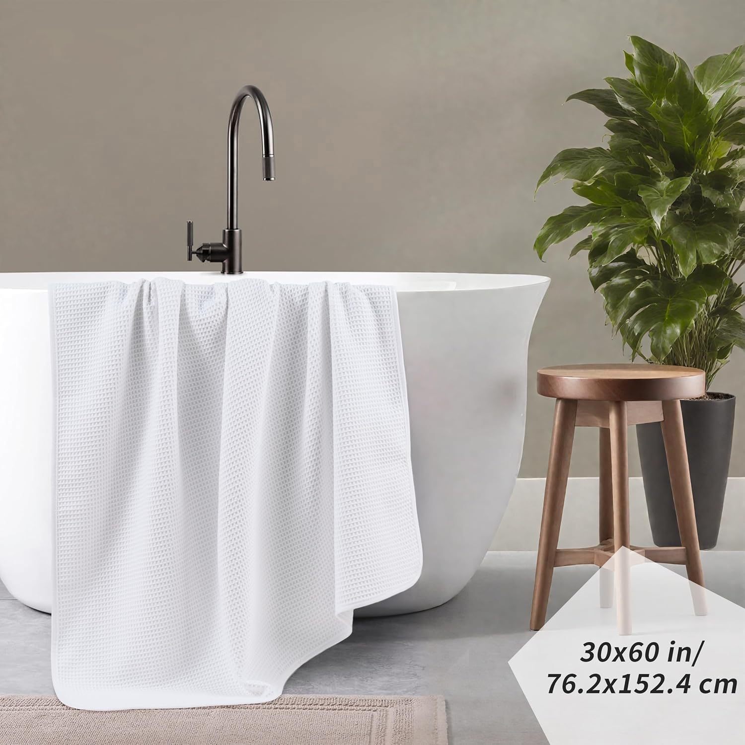 POLYTE Microfiber Oversize Quick Dry Lint Free Waffle Bath Towel for Body, 60 x 30 in, Set of 2
